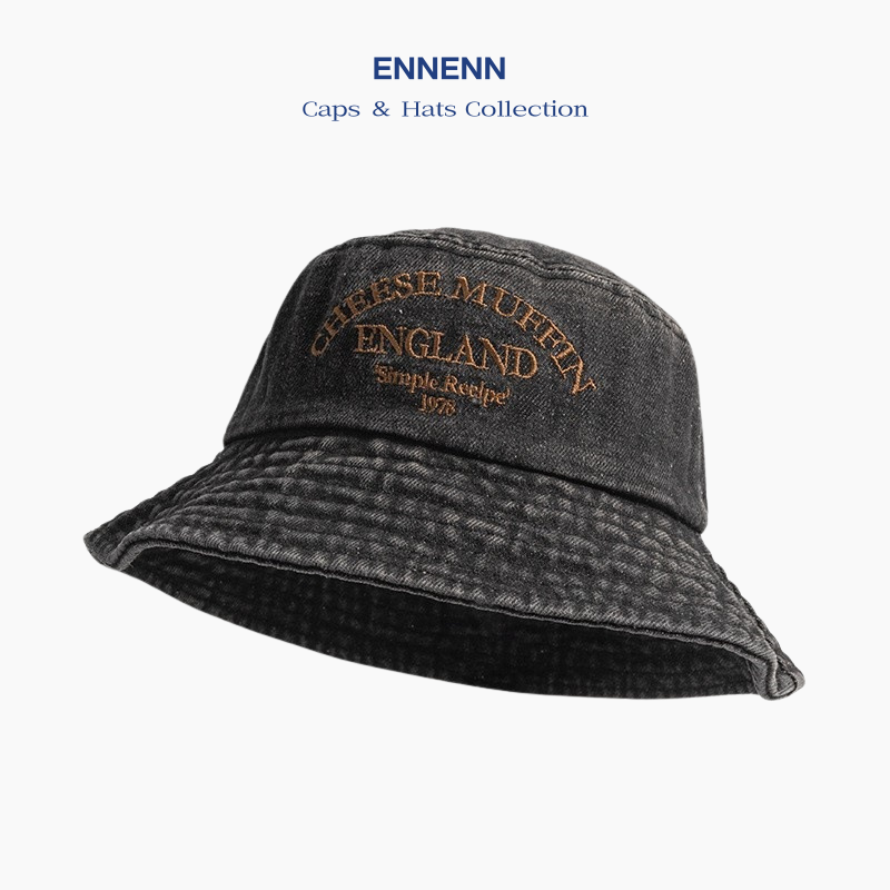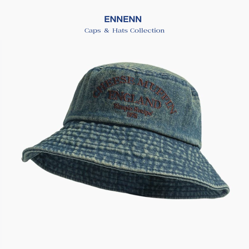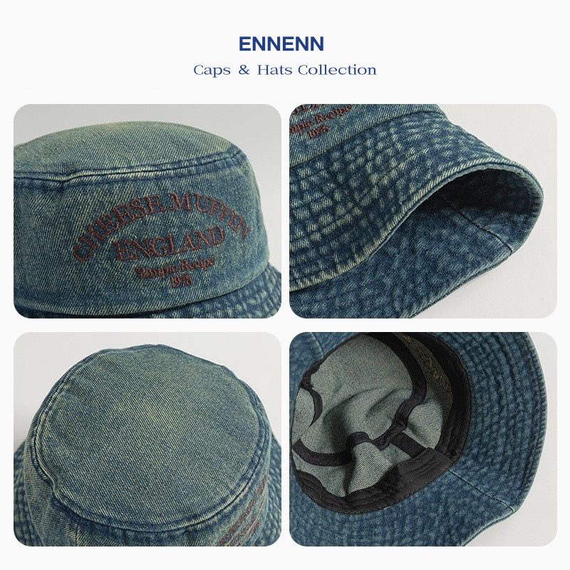 英文字刺繍のワンポイントがアクセントで、レトロでおしゃれなヴィンテージ風デニムバケットハット。