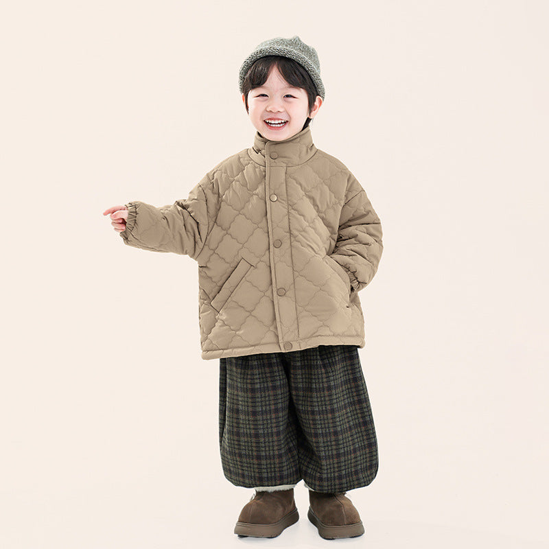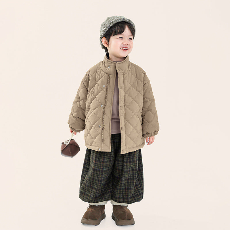 中綿入りスタンドカラーキルティングコート