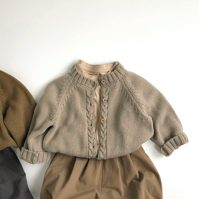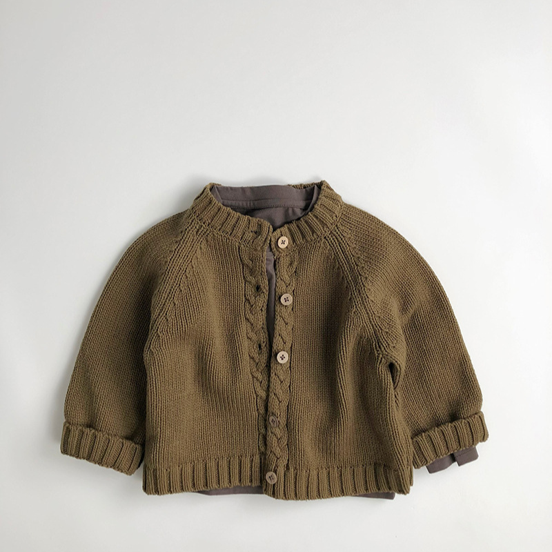 前立てケーブル編みニットカーディガン