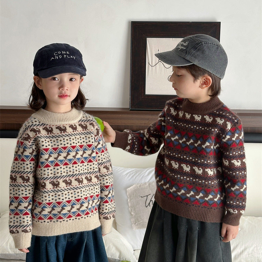 表情豊かな柄編みとナチュラル配色カラーが可愛いセーターです。