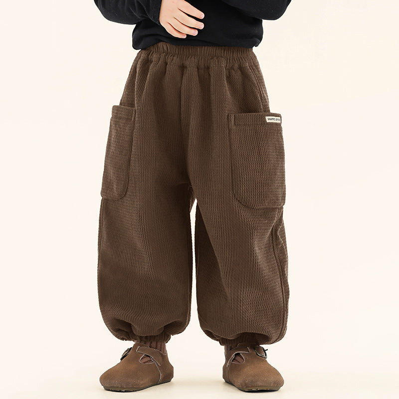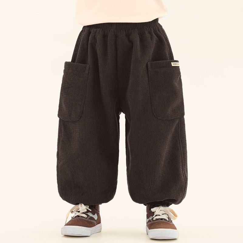 表面に凹凸感があり、立体的なニュアンスを楽しめるコーデュロイ素材で、裏面はボアで暖かいリラックスパンツです。