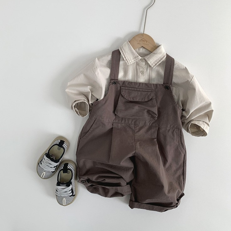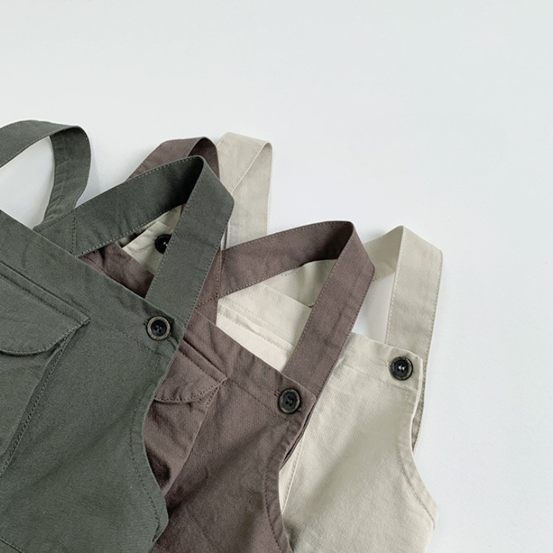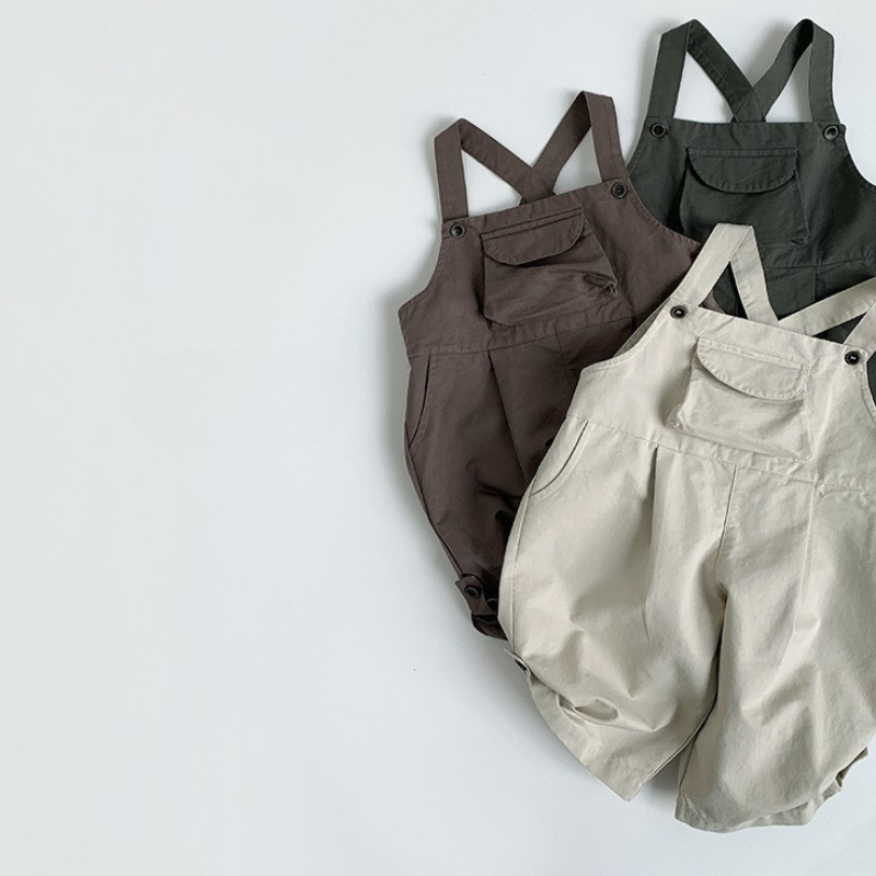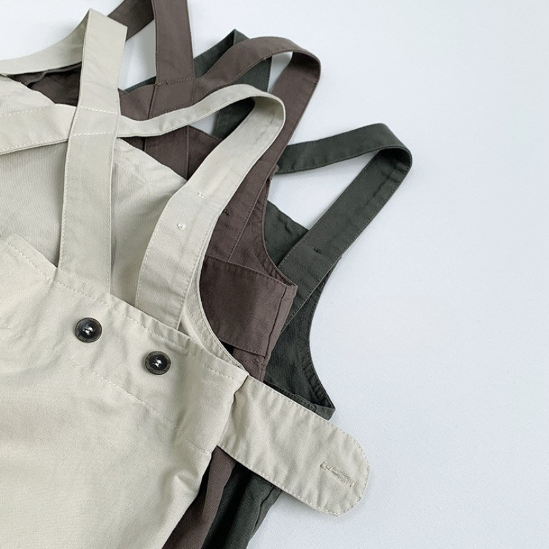 太めのストラップと胸元の大きなポケットが愛らしい、こだわりのオーバーオールです。