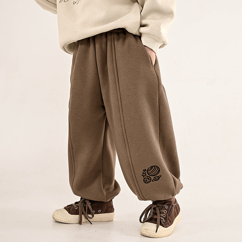 宇宙をイメージした刺繍がとてもキュートな裏ボアスウェットパンツです。