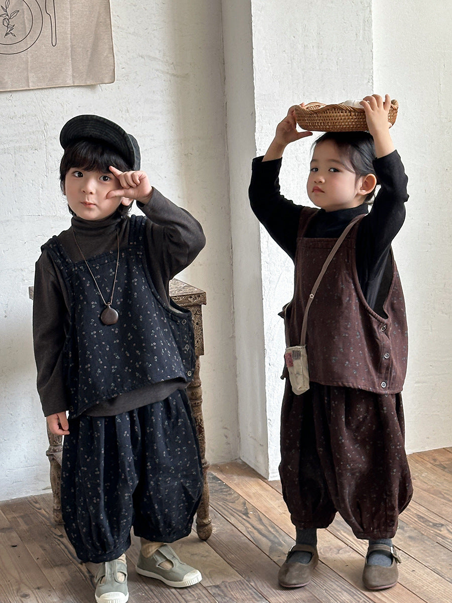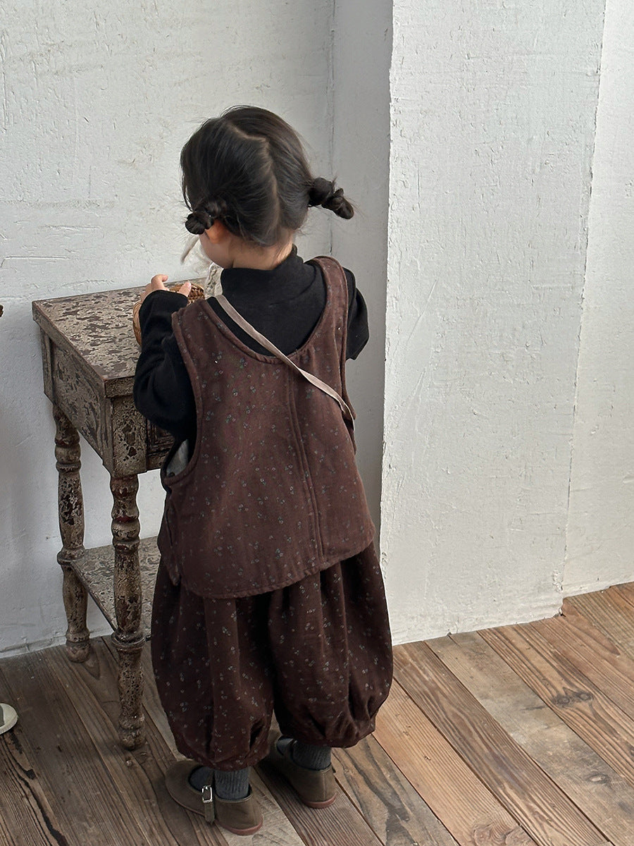 “やりすぎない”可愛さが毎日を楽しくする、ベストとサーカスパンツの小花柄2点セット。