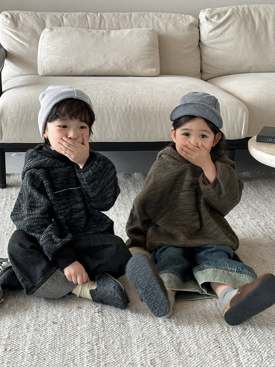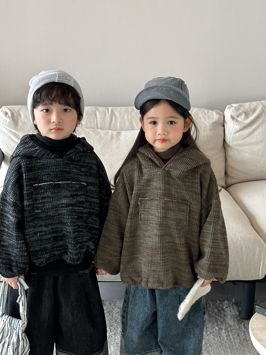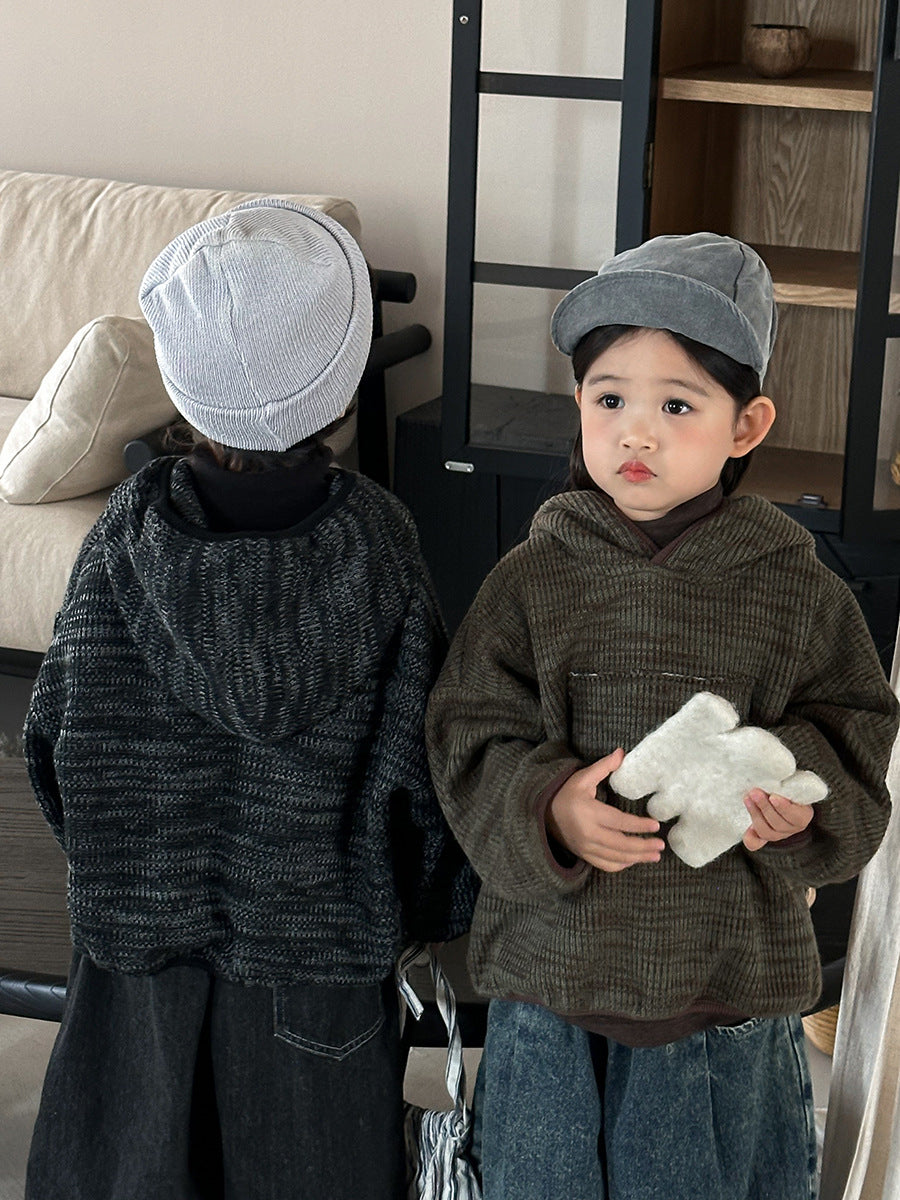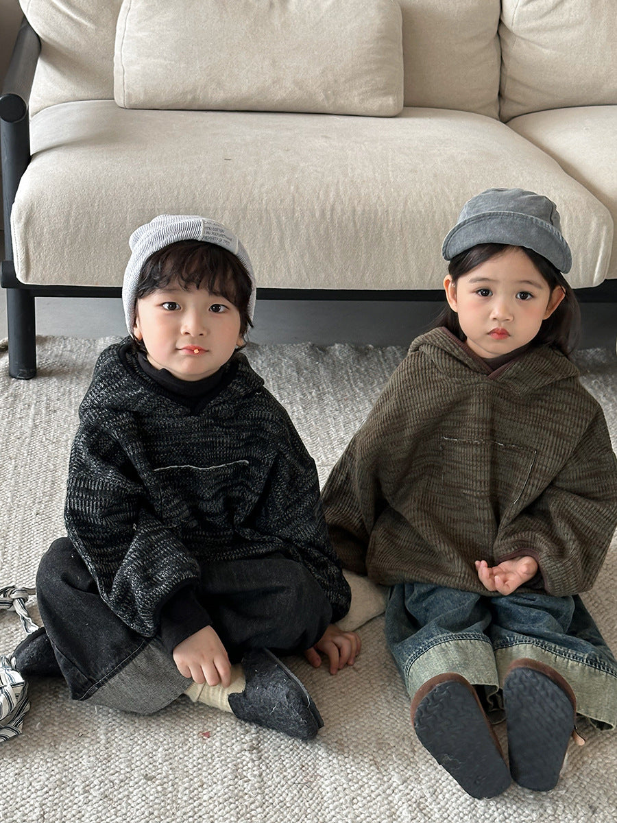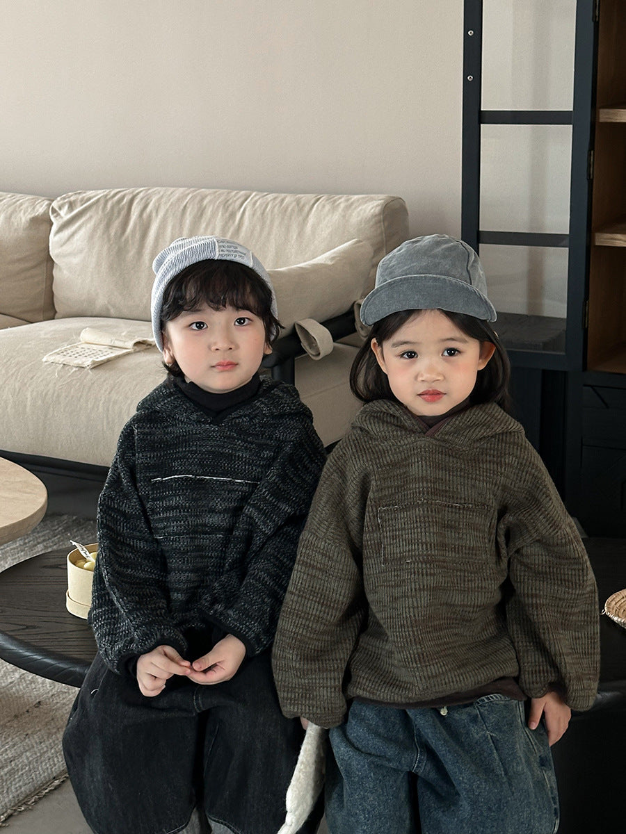 太い毛糸で編んだ、温かくておしゃれなフード付きニットです。