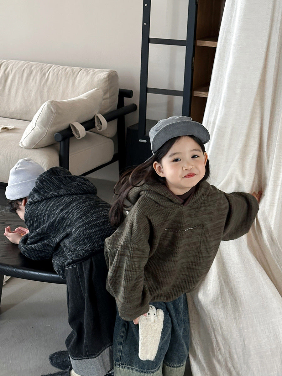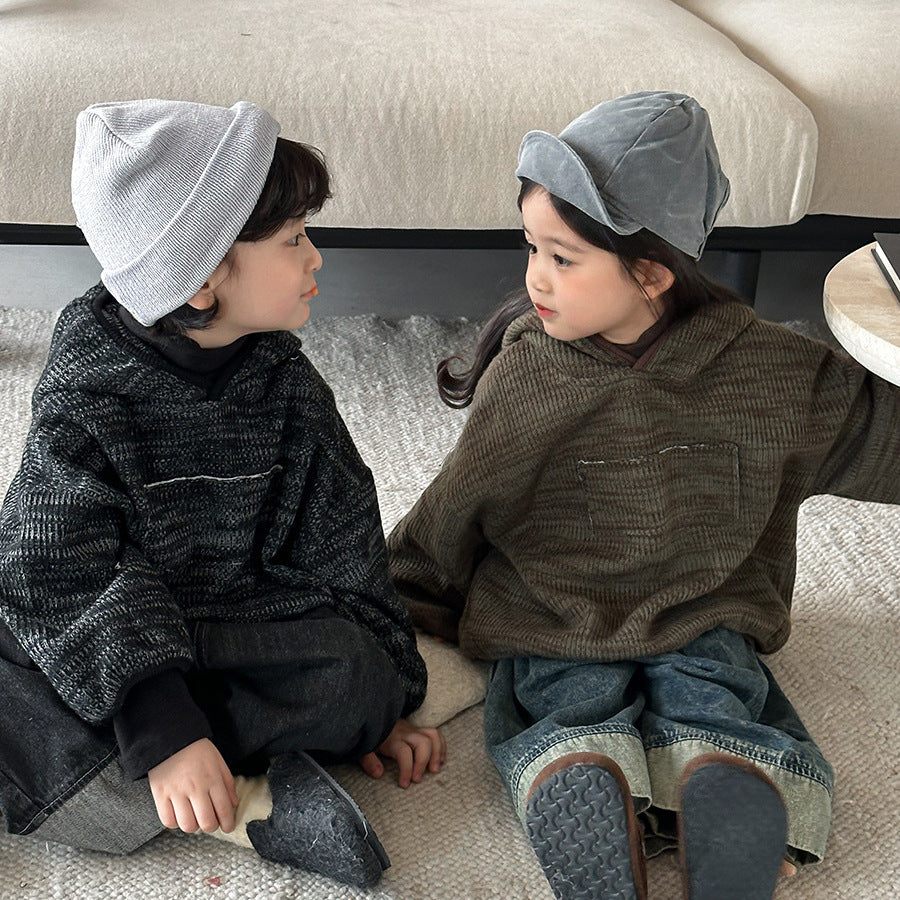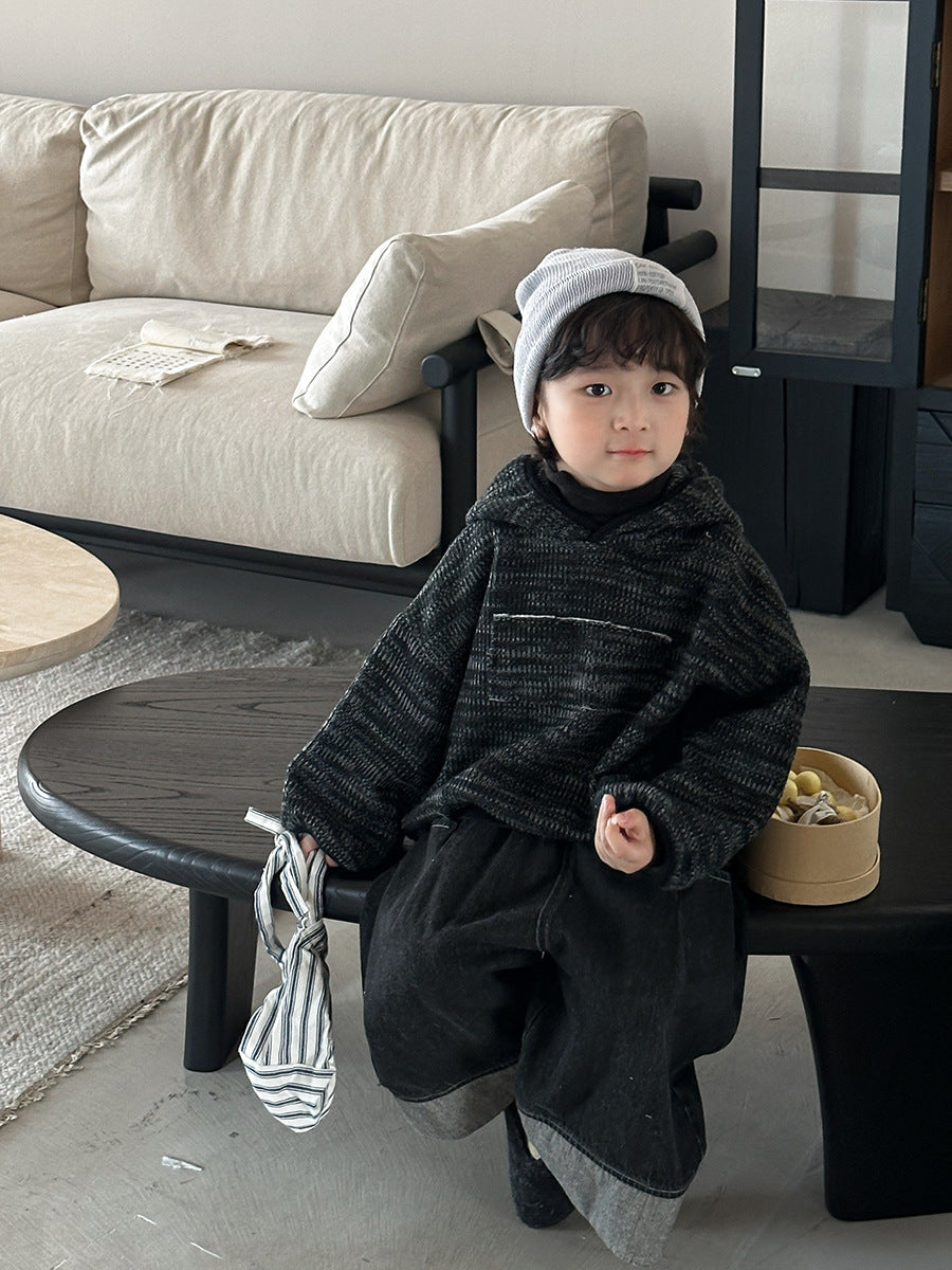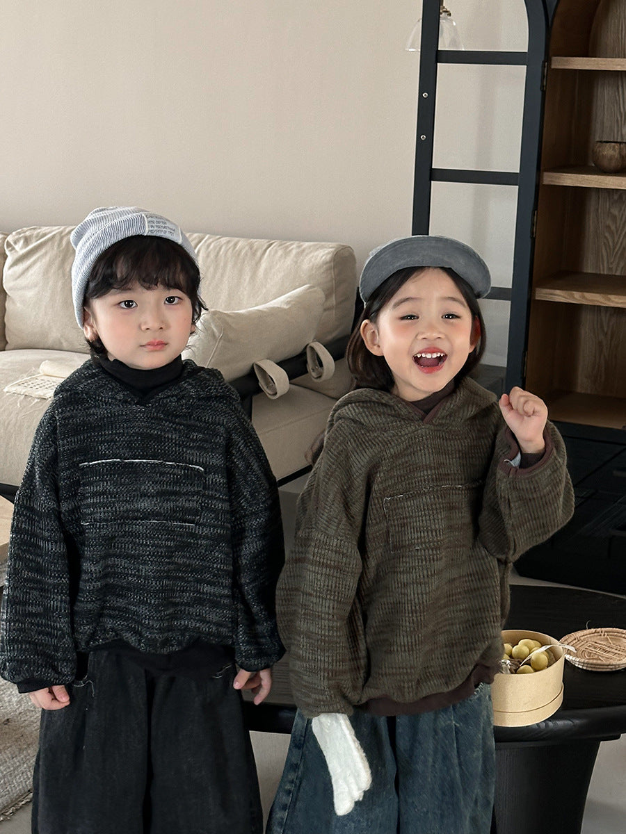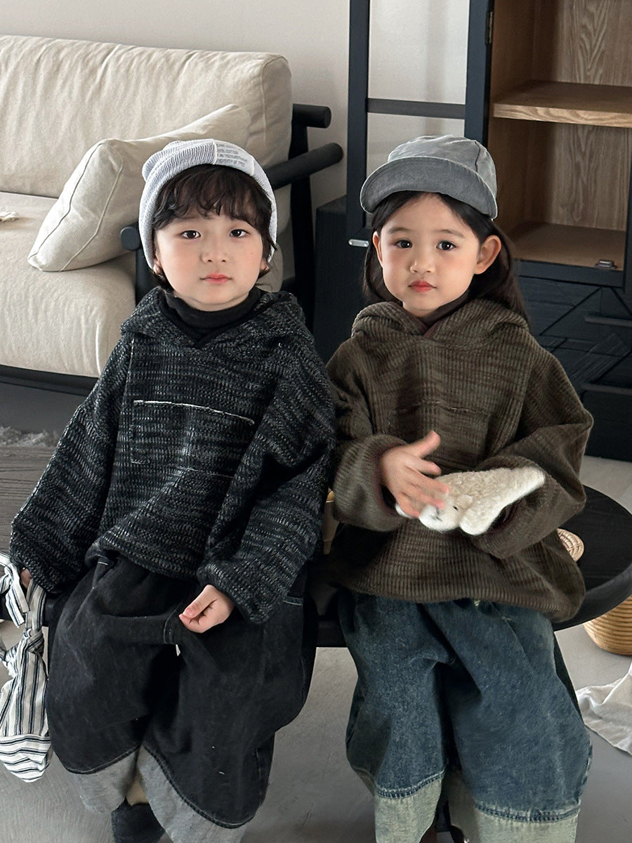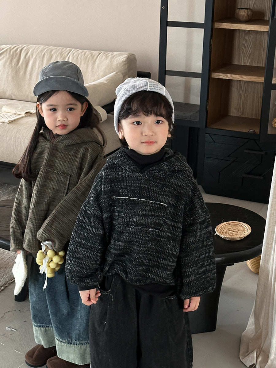 太い毛糸で編んだ、温かくておしゃれなフード付きニットです。