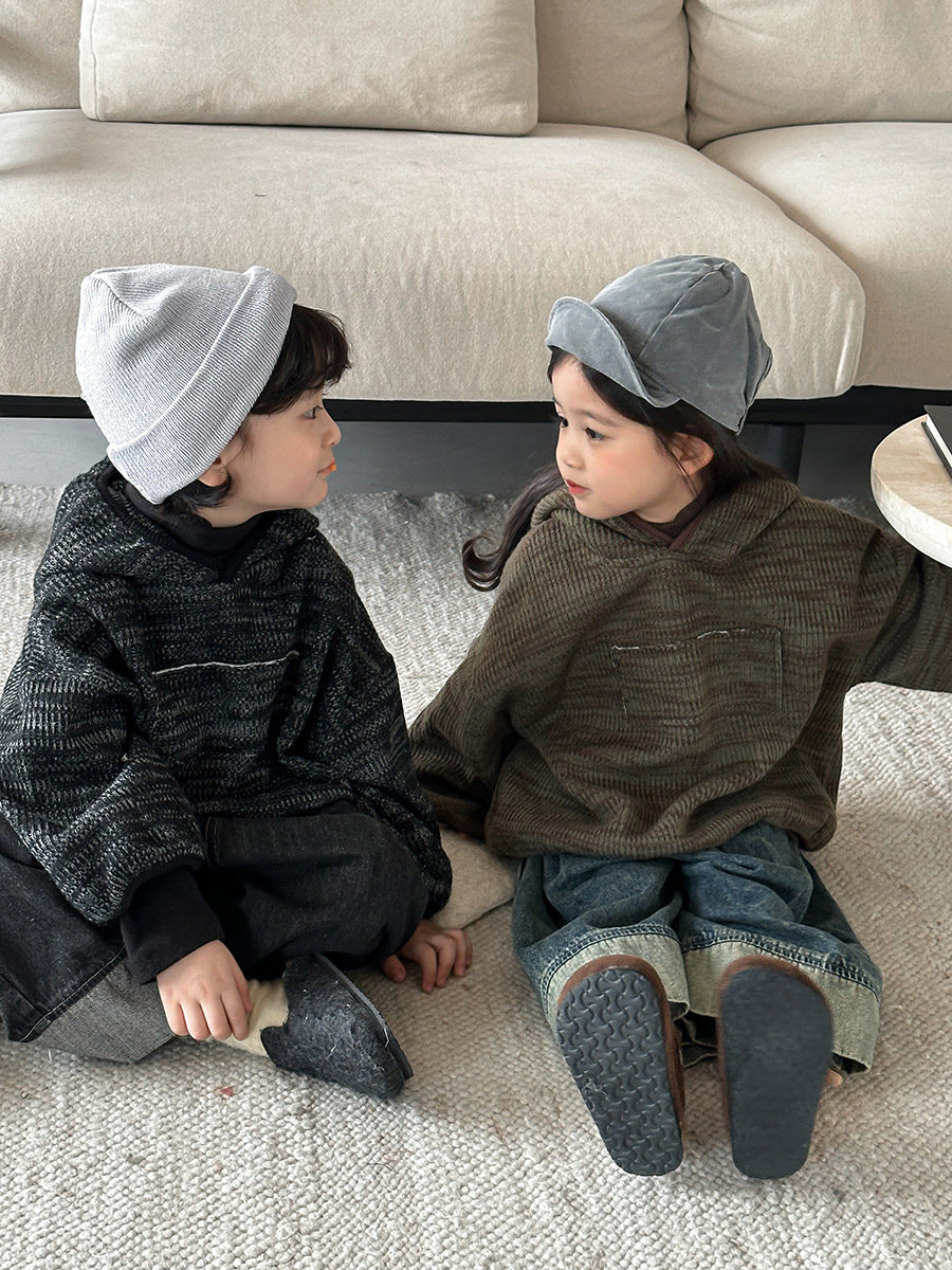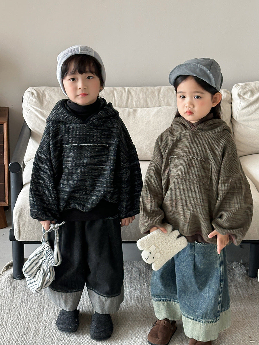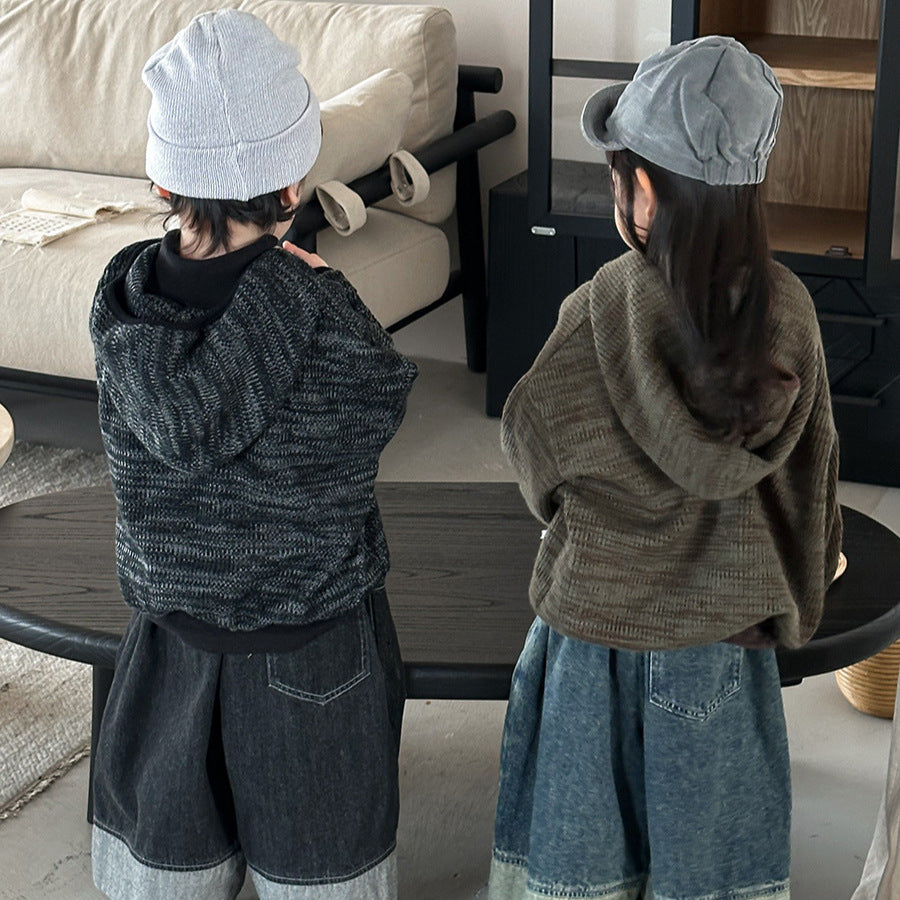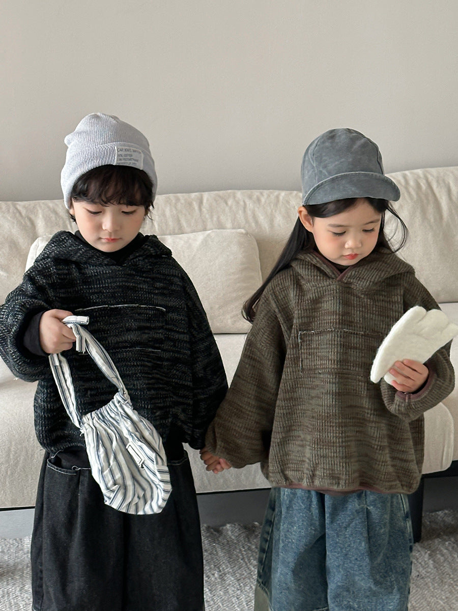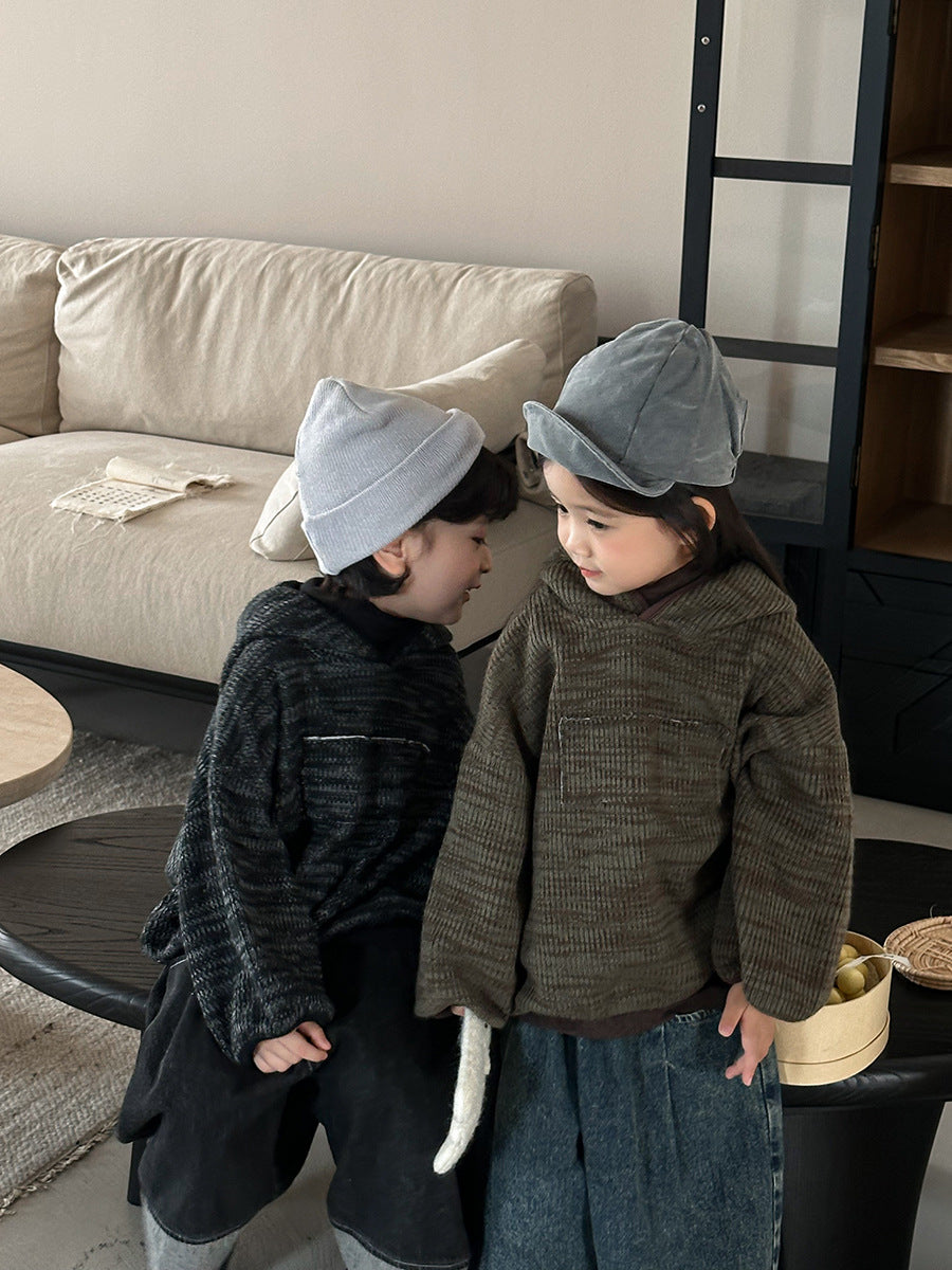 太い毛糸で編んだ、温かくておしゃれなフード付きニットです。