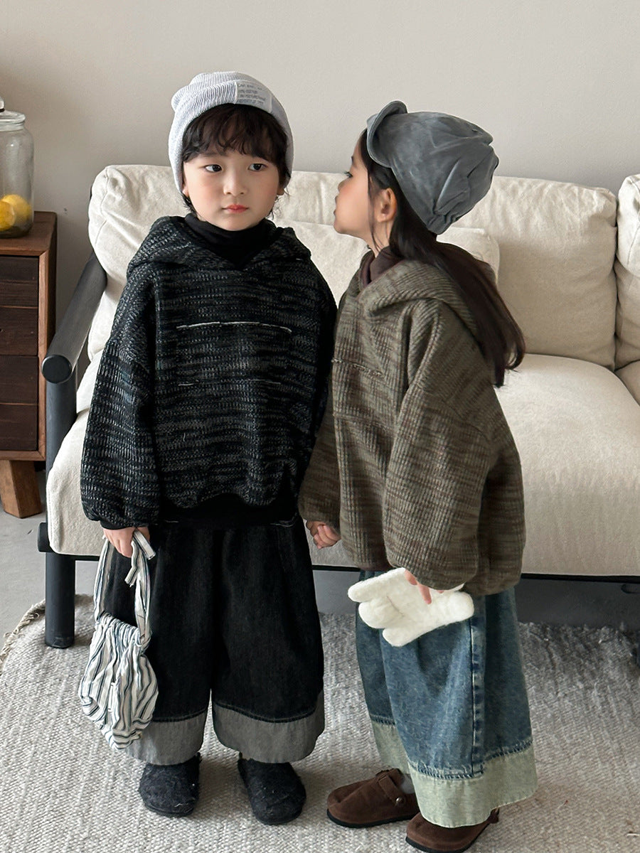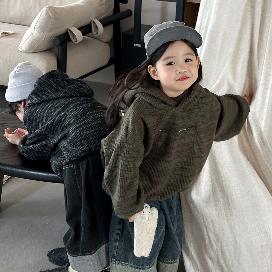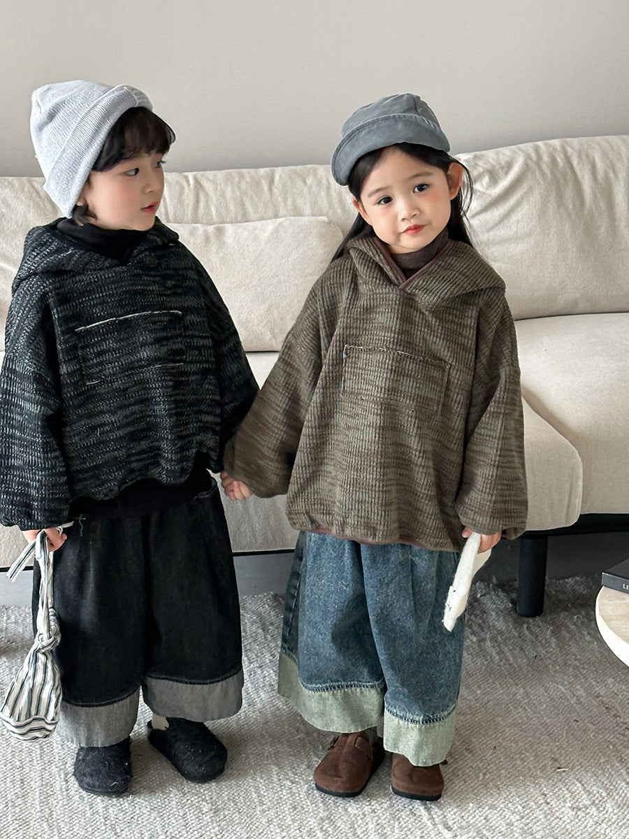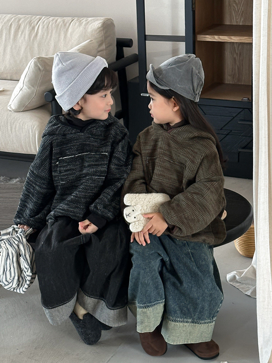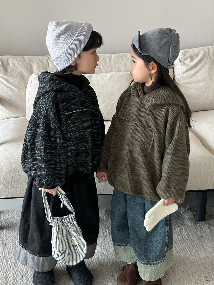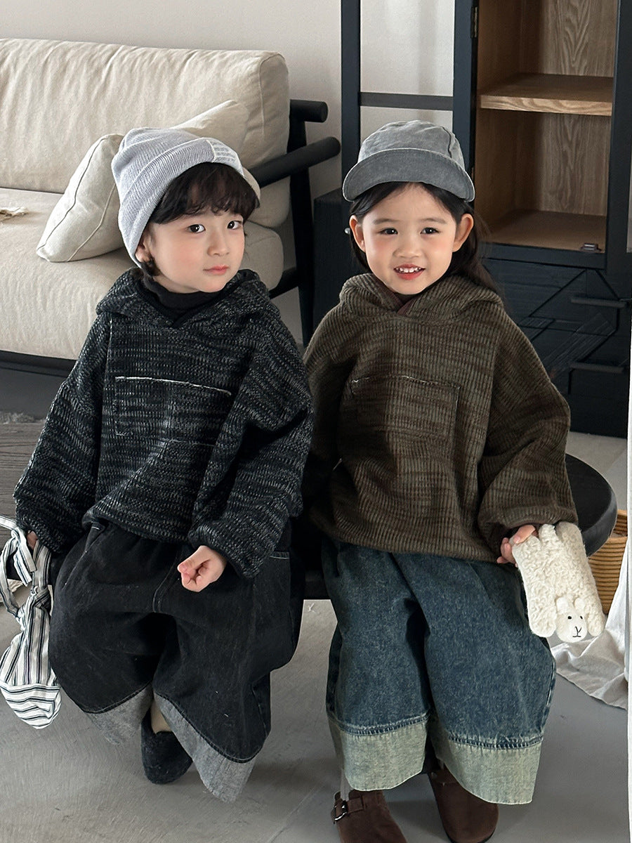 太い毛糸で編んだ、温かくておしゃれなフード付きニットです。