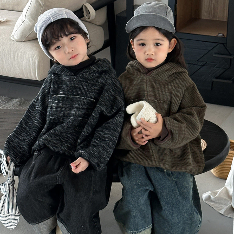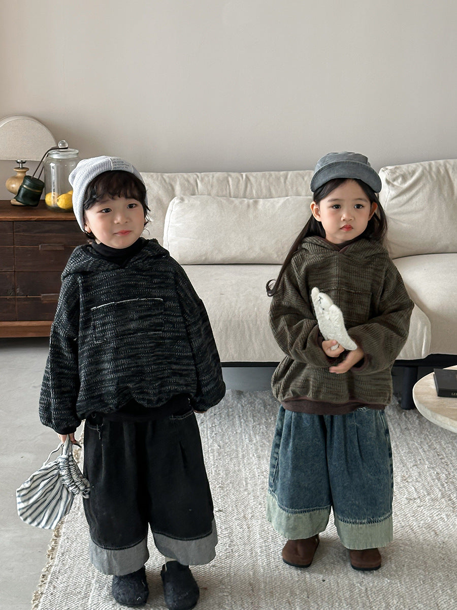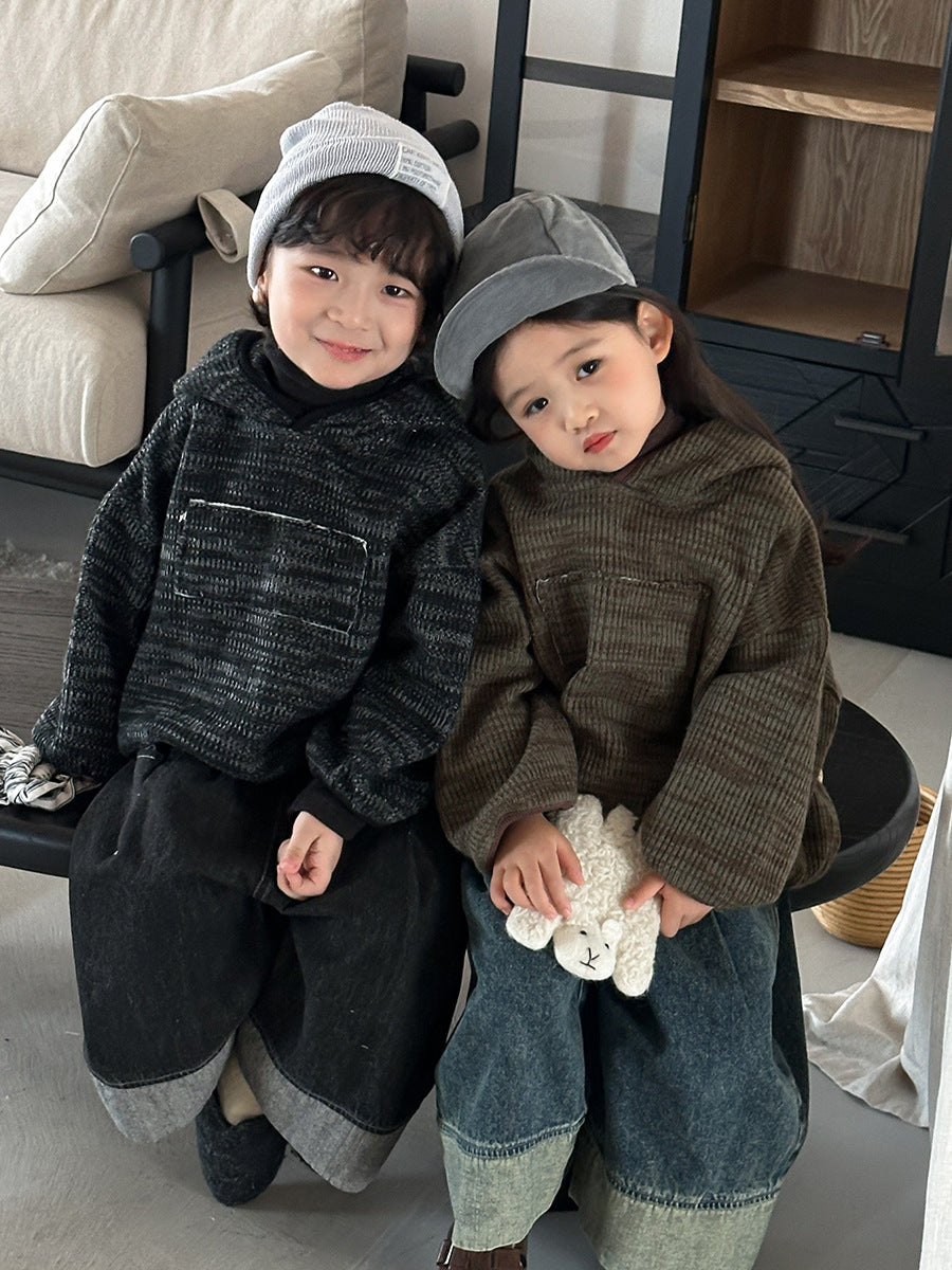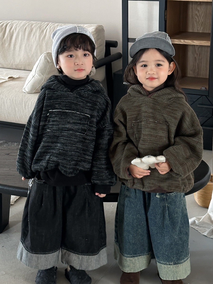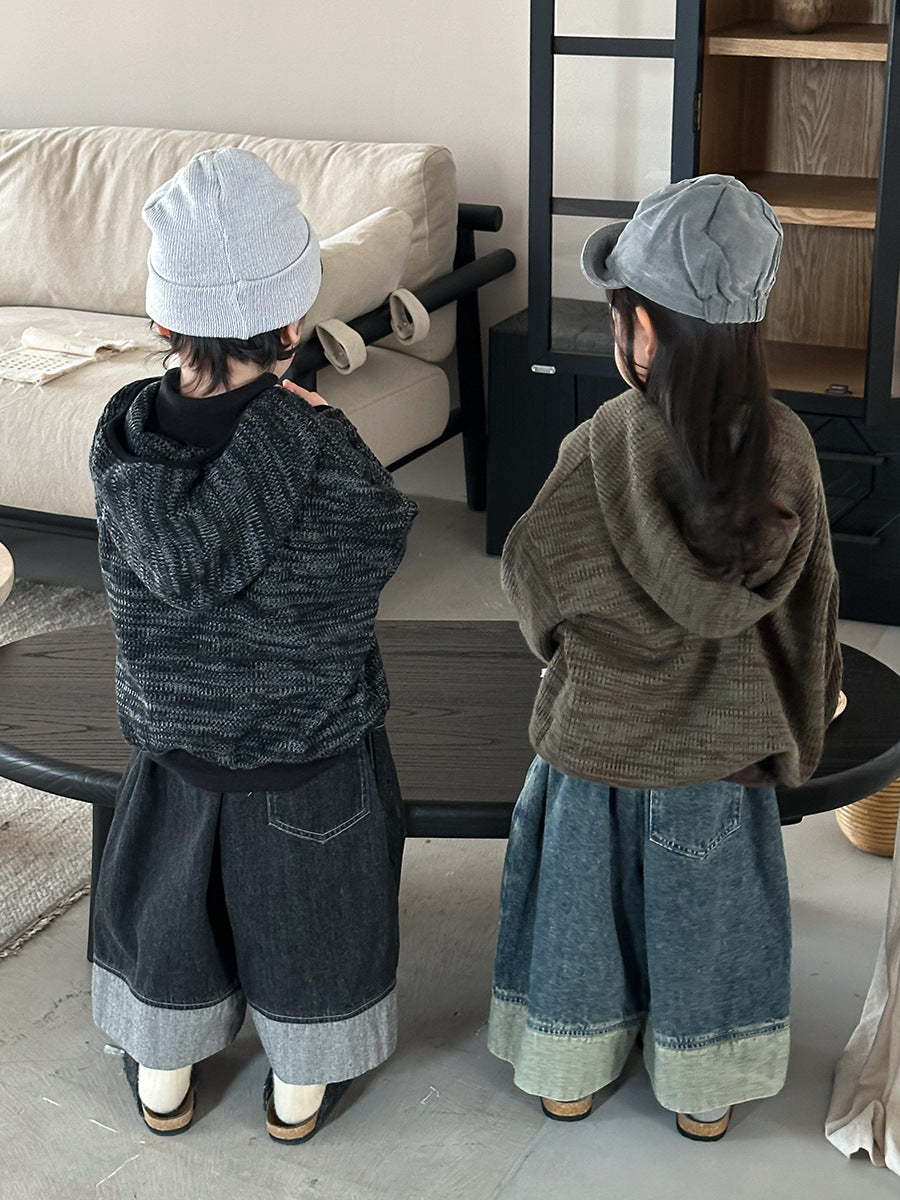 太い毛糸で編んだ、温かくておしゃれなフード付きニットです。