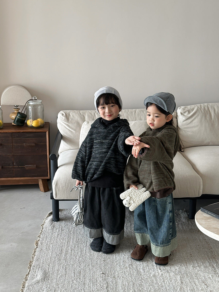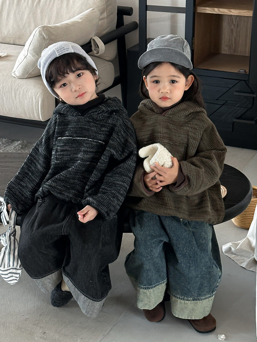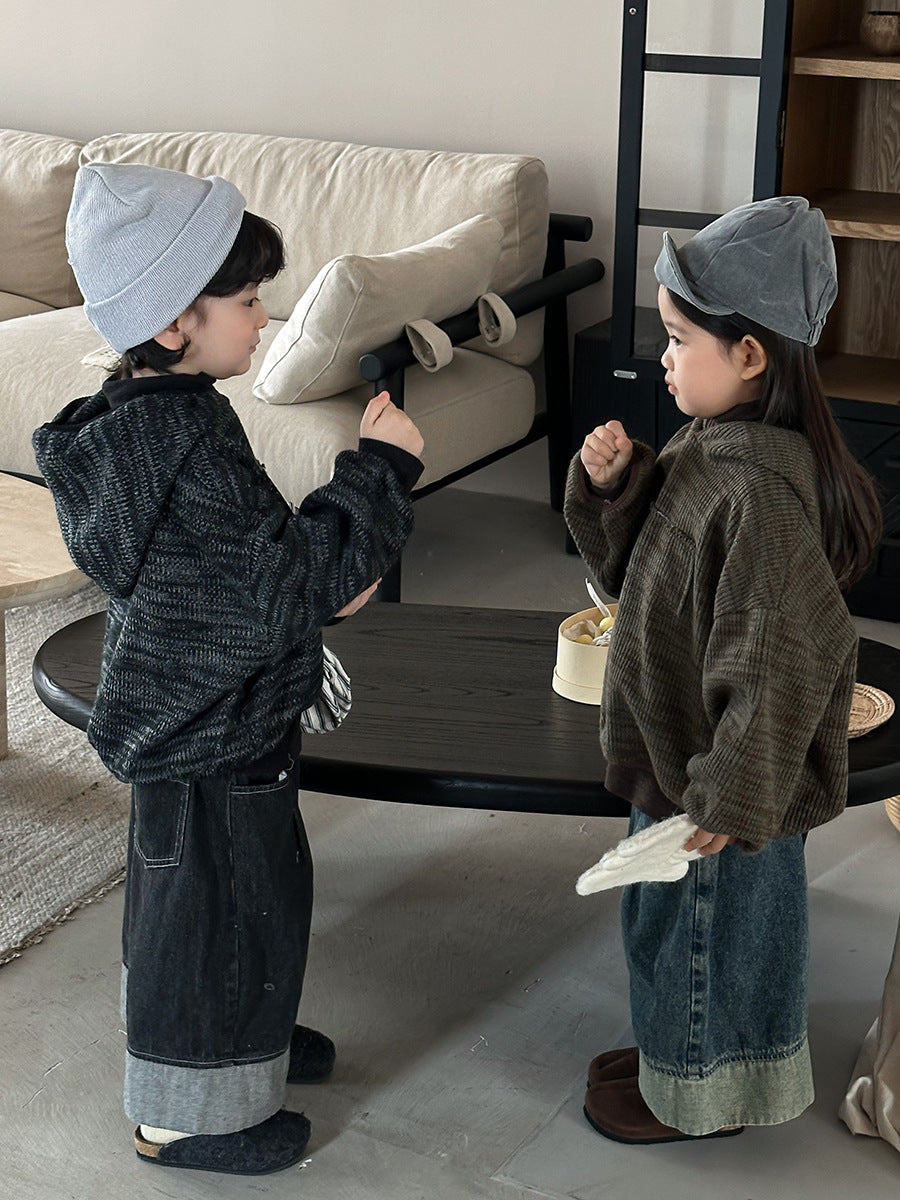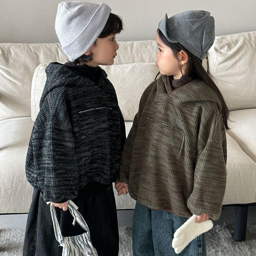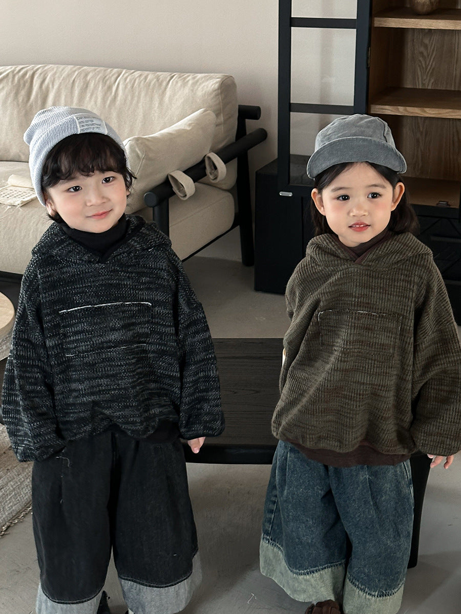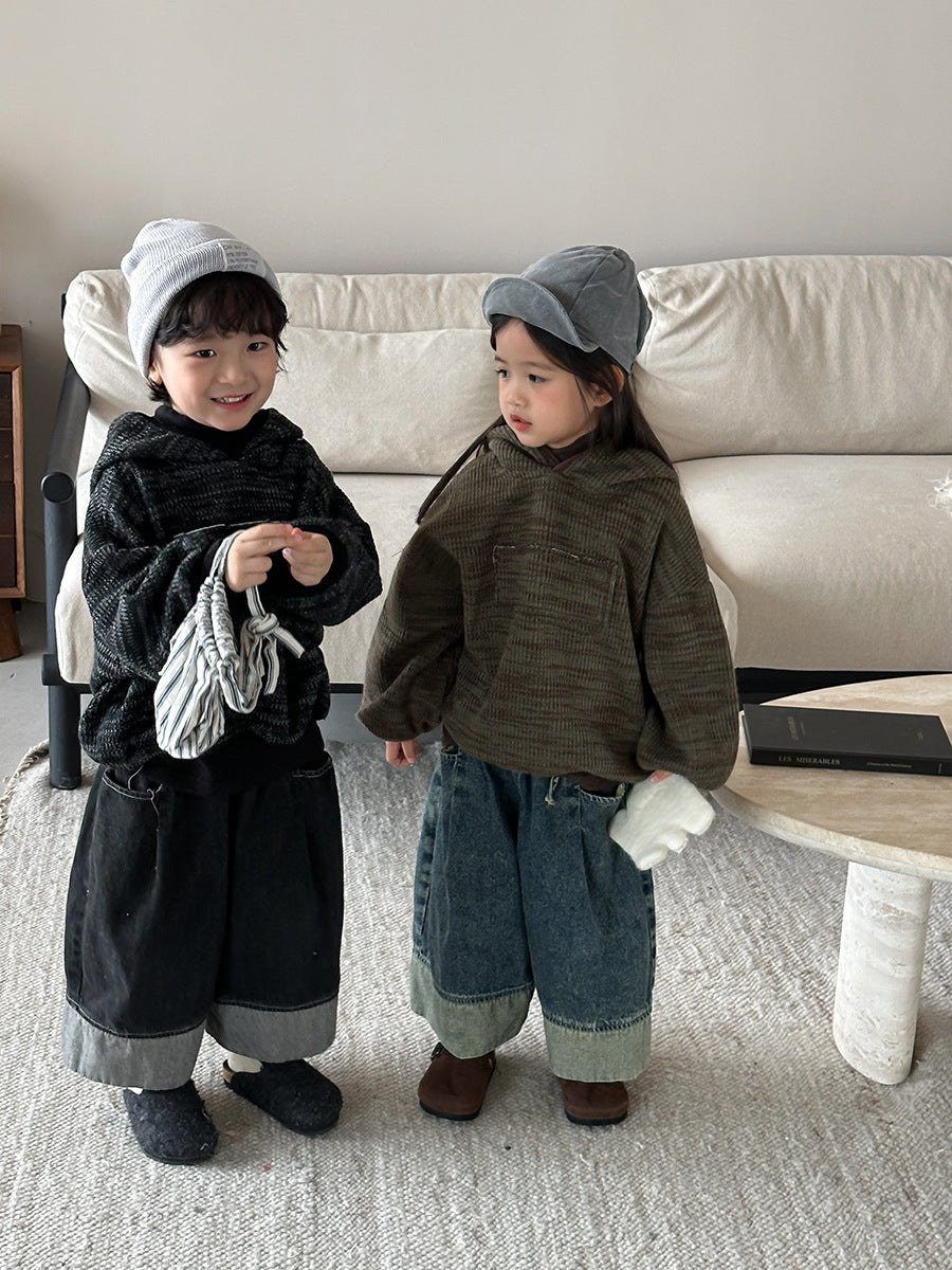 太い毛糸で編んだ、温かくておしゃれなフード付きニットです。