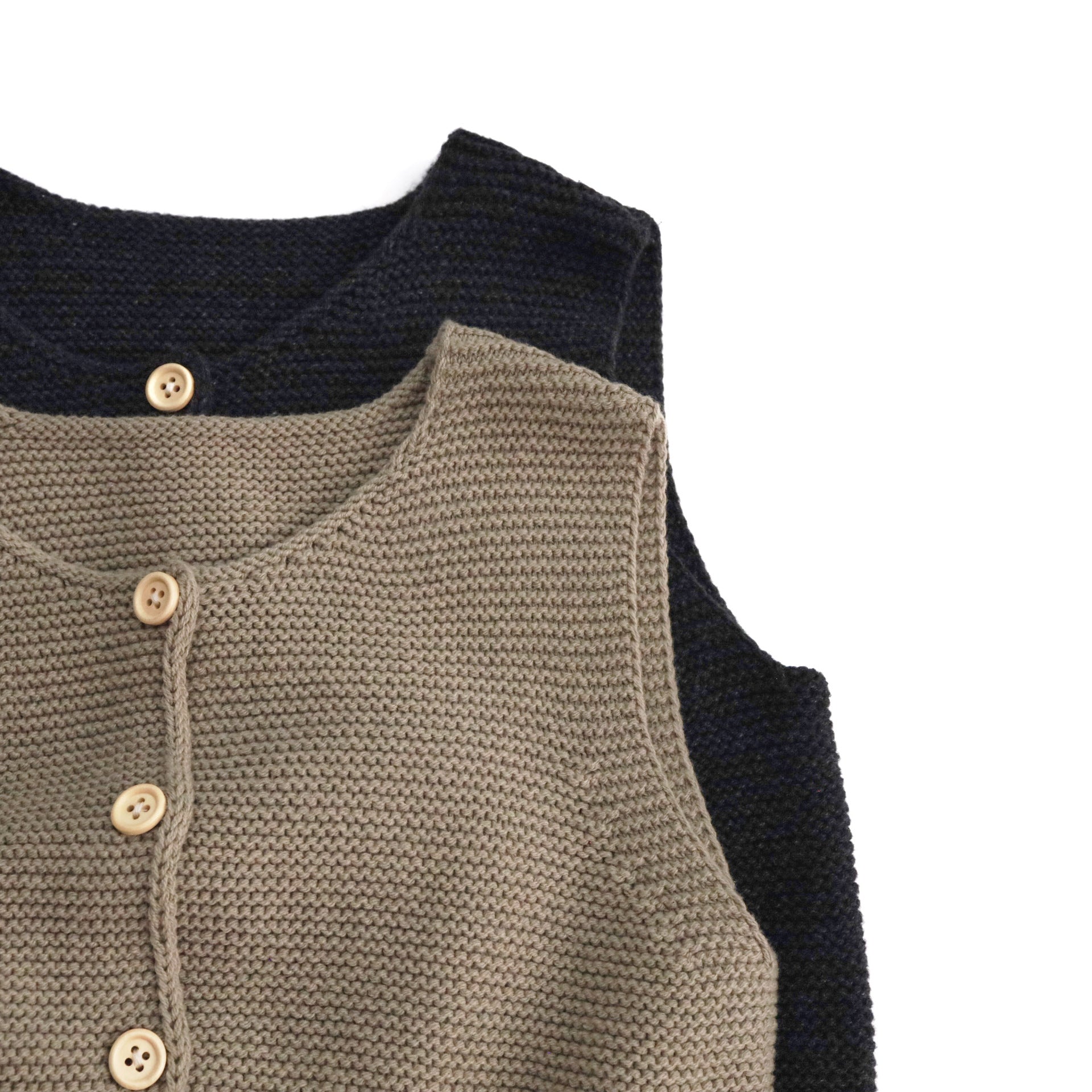 あえて太く編んだデザインが存在感を出し、通気性の良い綿混素材なので、暑すぎず寒すぎない春や秋にぴったりなニットベスト。