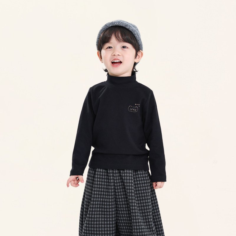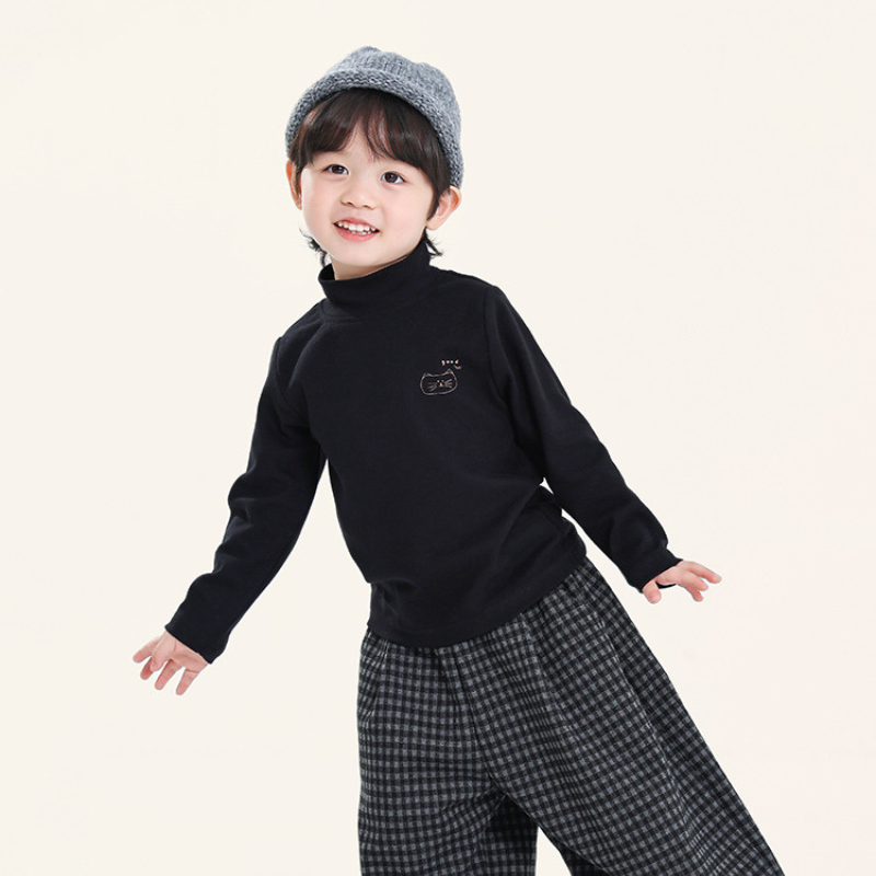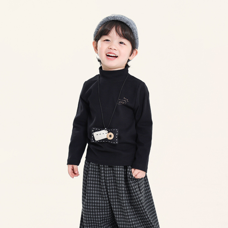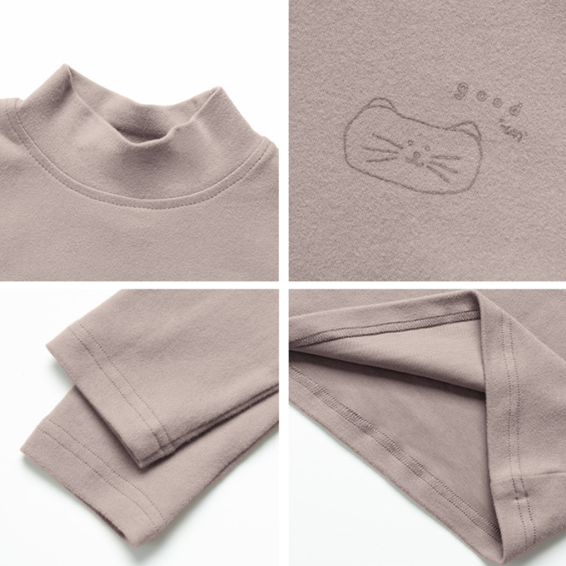 胸元の小さな猫のシルエットが、シンプルなデザインの中に愛らしさをプラス。