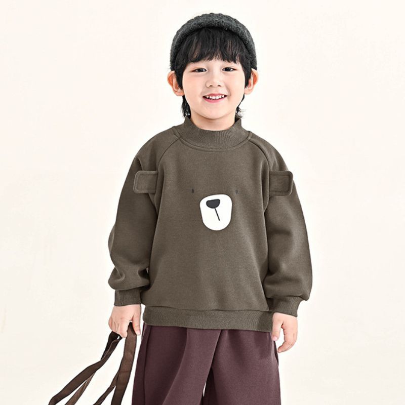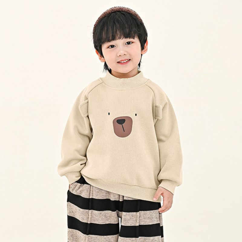 かわいいクマプリントと立体クマ耳がアイキャッチのプルオーバーです。