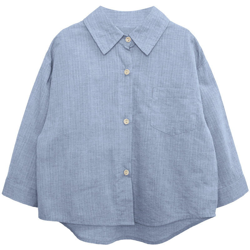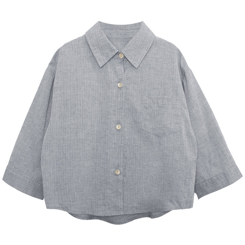 カーディガンやベストとの重ね着はもちろん、一枚でも存在感を発揮します。春のコーディネートに、さりげないおしゃれさを添える一枚です。