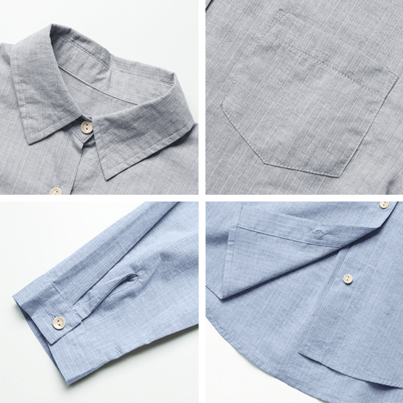 プリントではなく、立体的な糸が織りなすストライプシャツ。程よいゆとりと軽量な着心地が特徴。