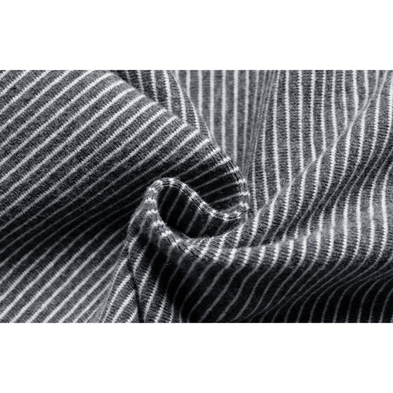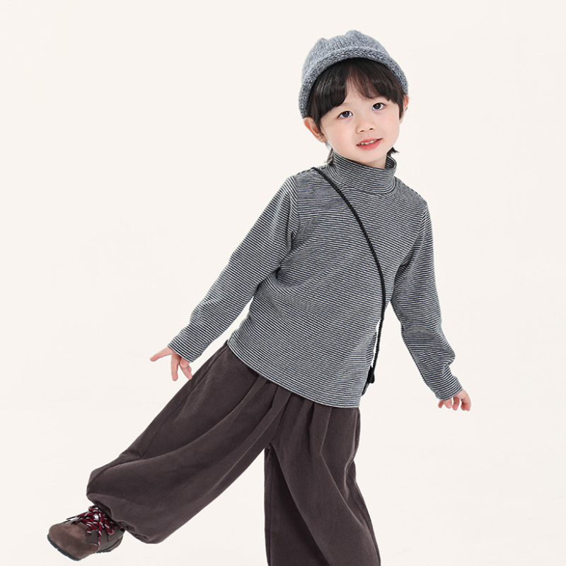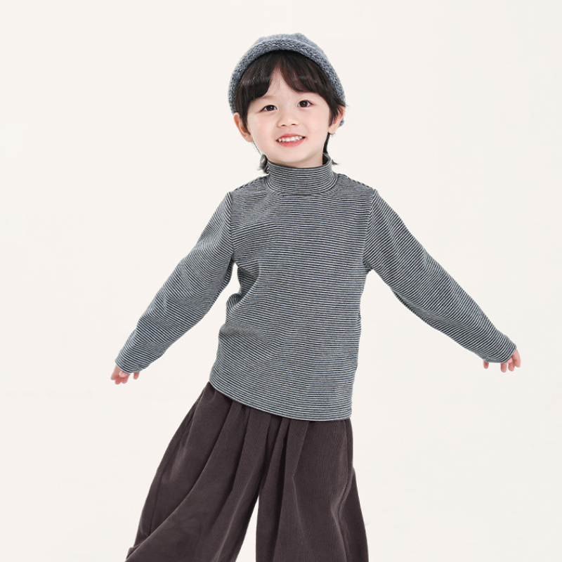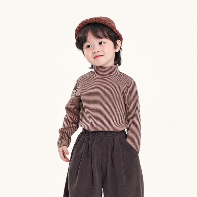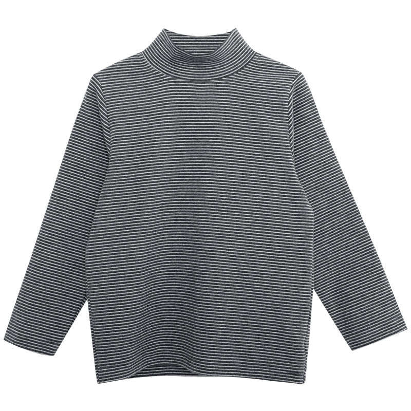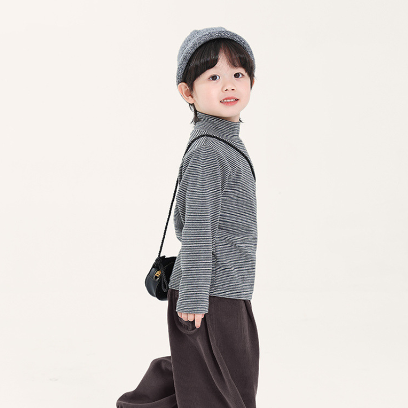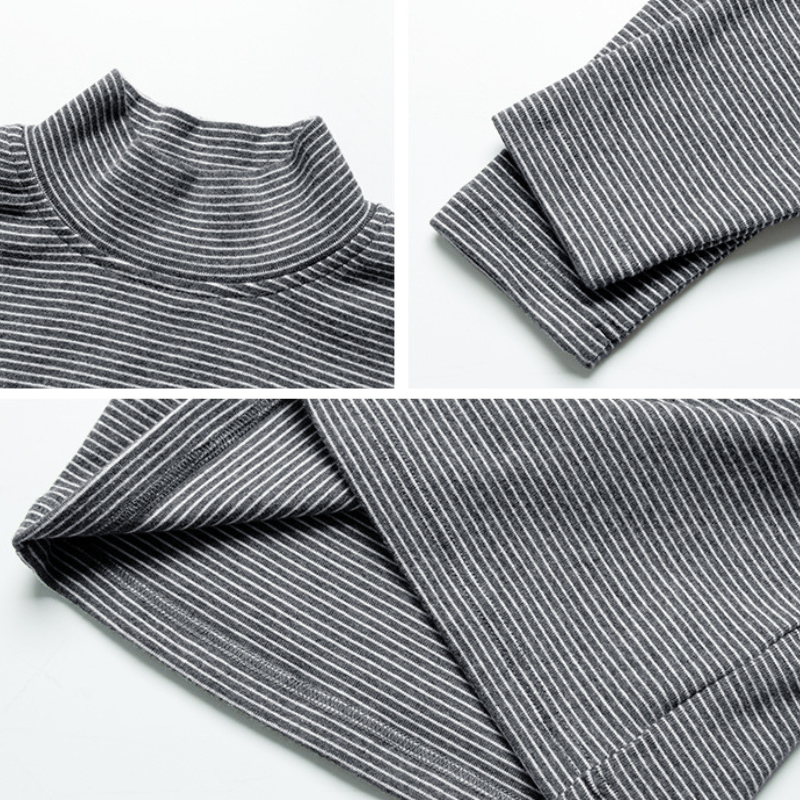 絶妙な太さの細ボーダーが、こなれた印象を演出するハイネックインナー。