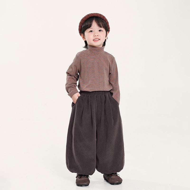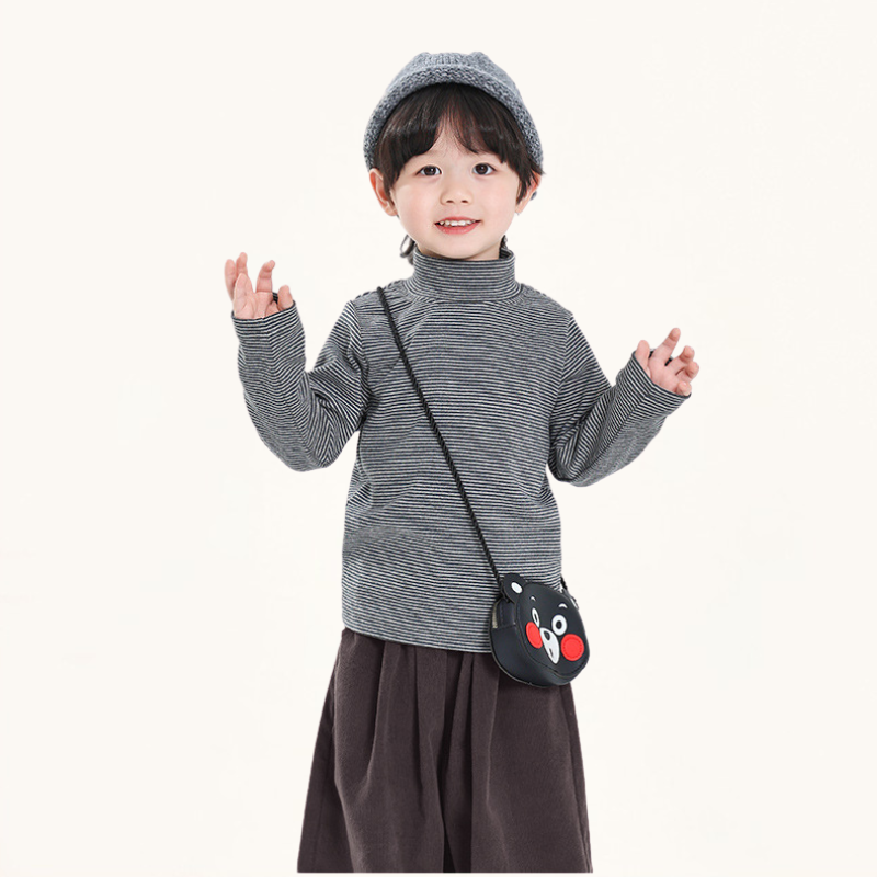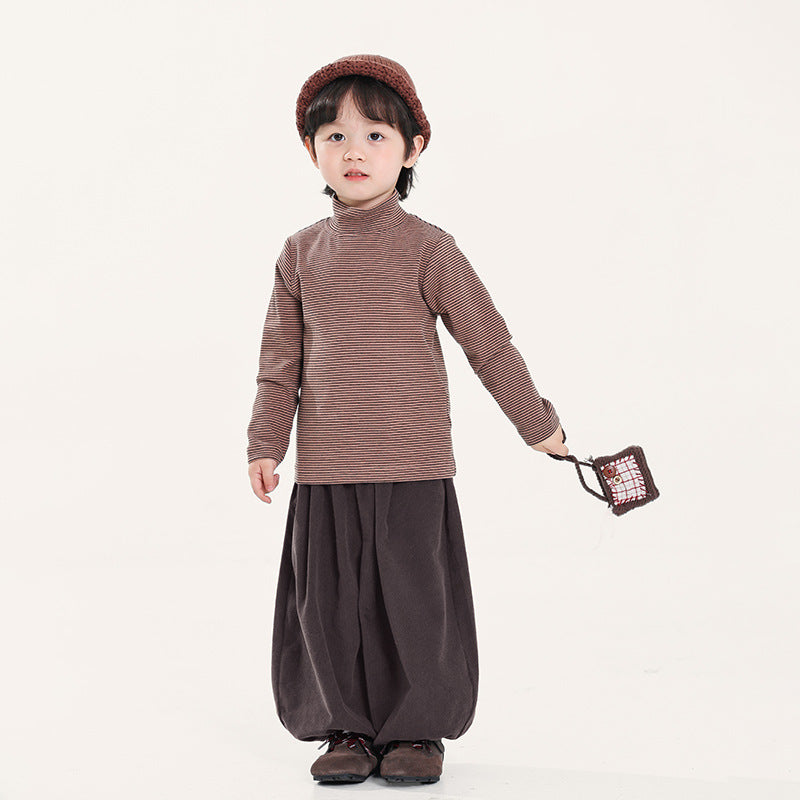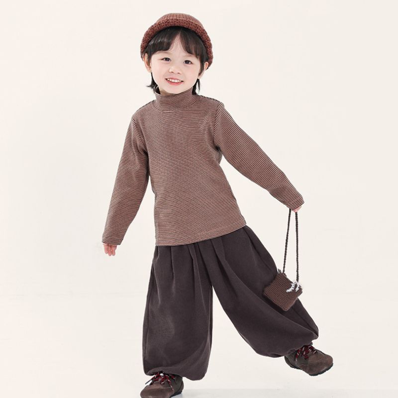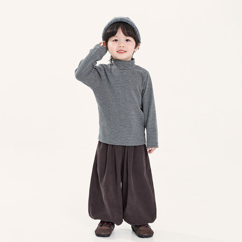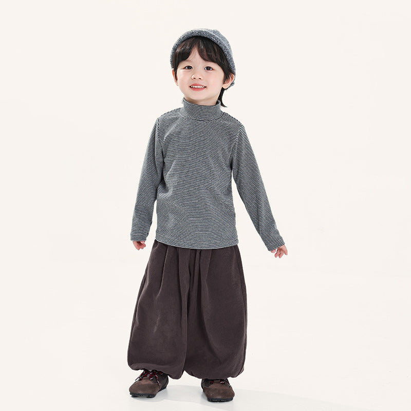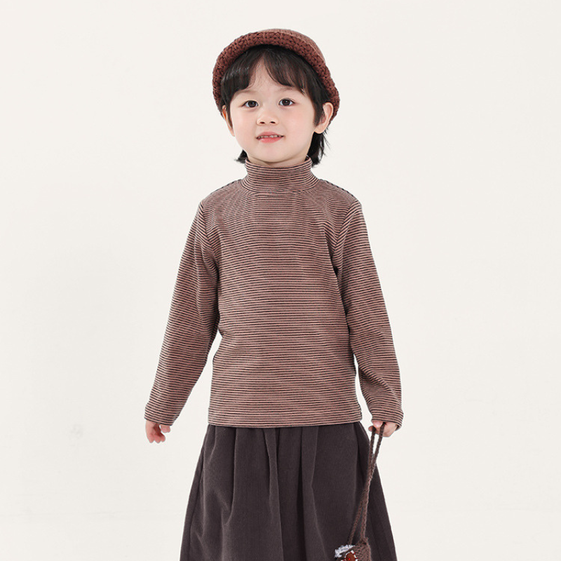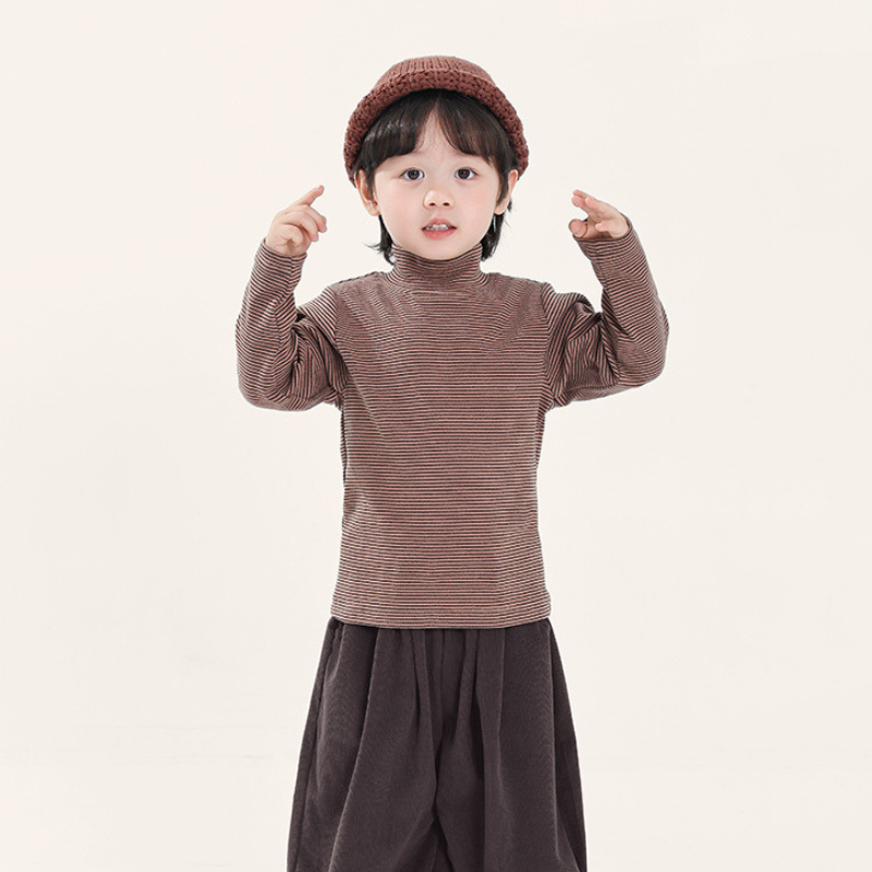 絶妙な太さの細ボーダーが、こなれた印象を演出するハイネックインナー。