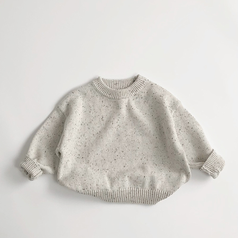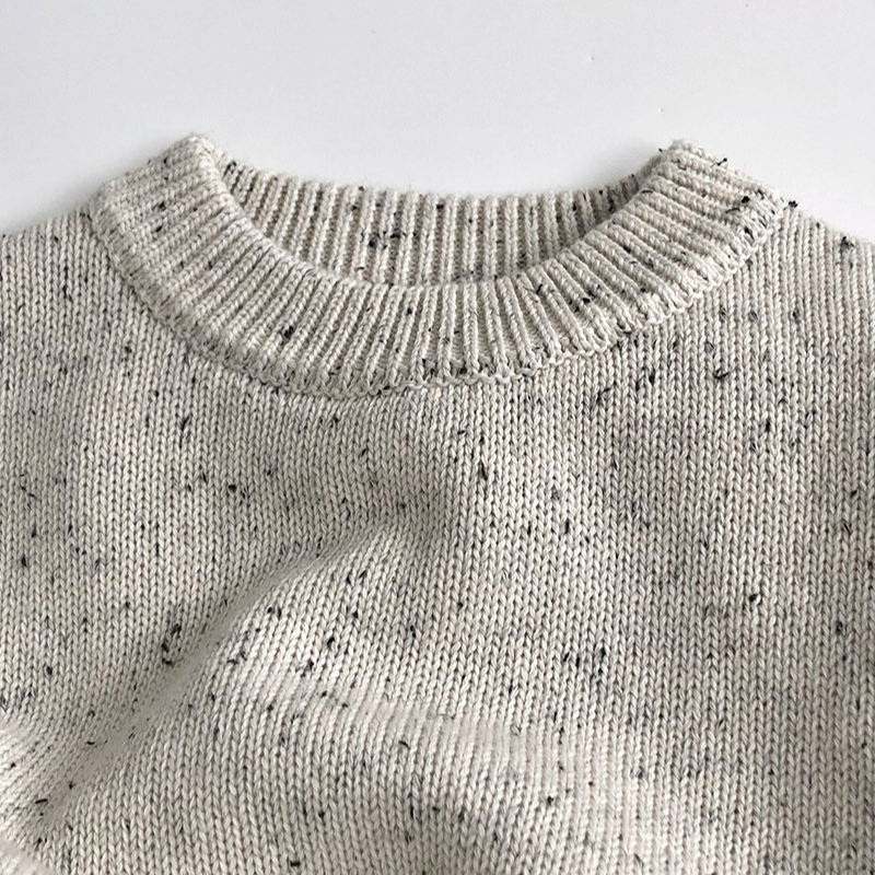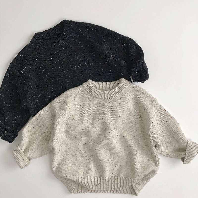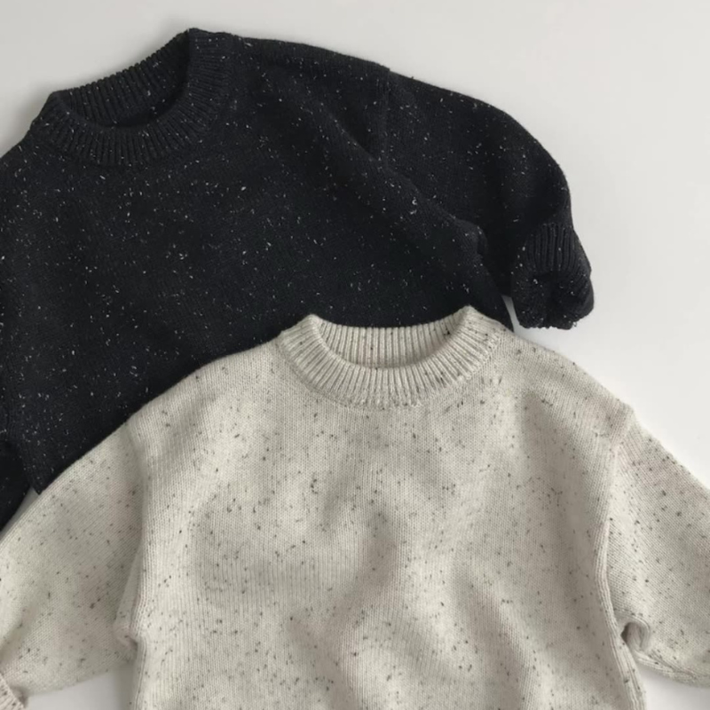 黒地に白いスポット、白地に黒いスポットを散りばめた、ふんわりとした風合いの綿100%ニットです。