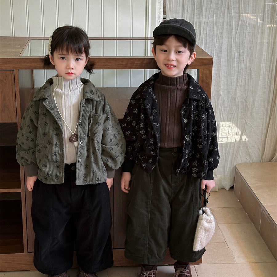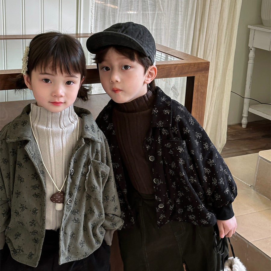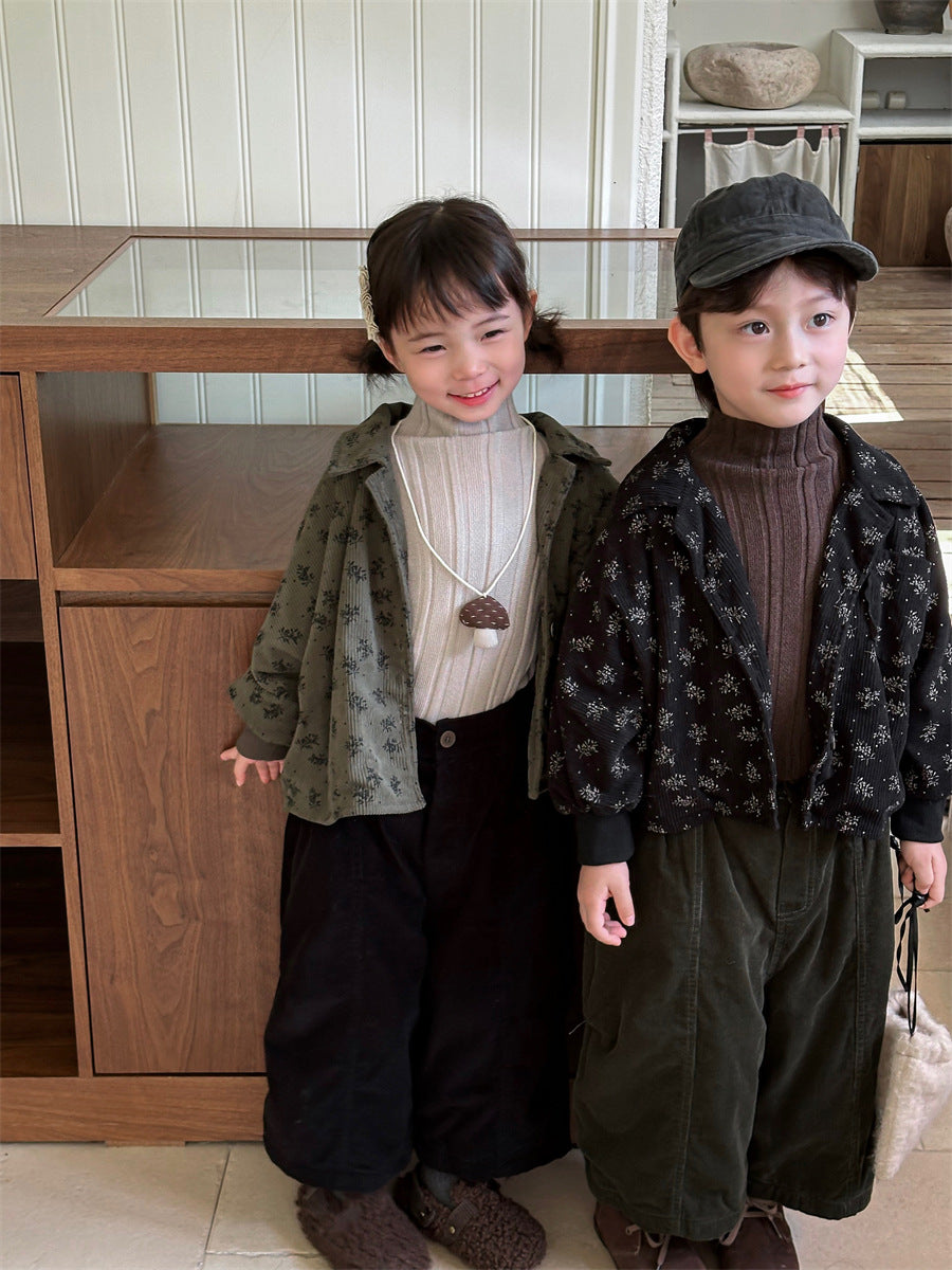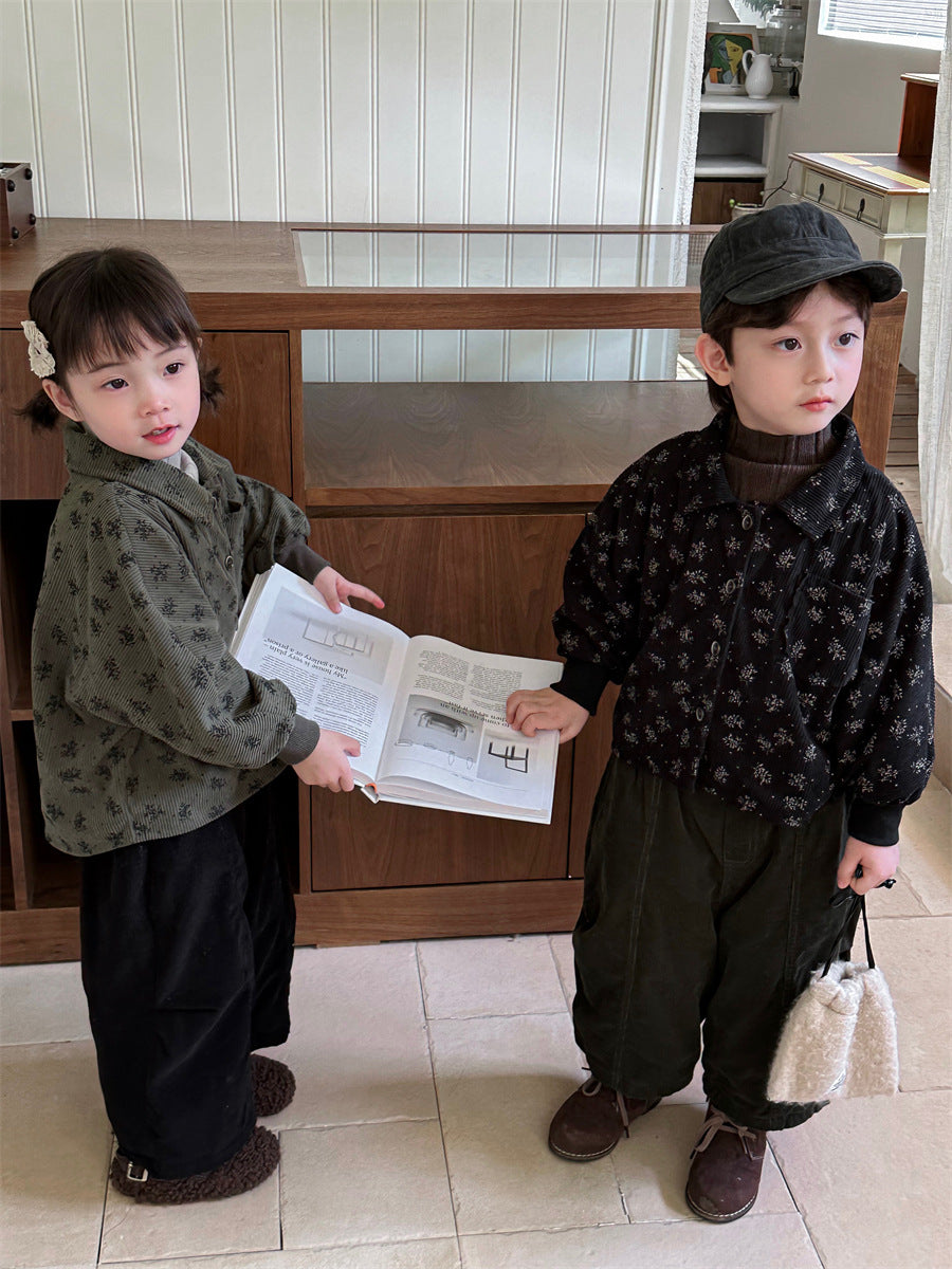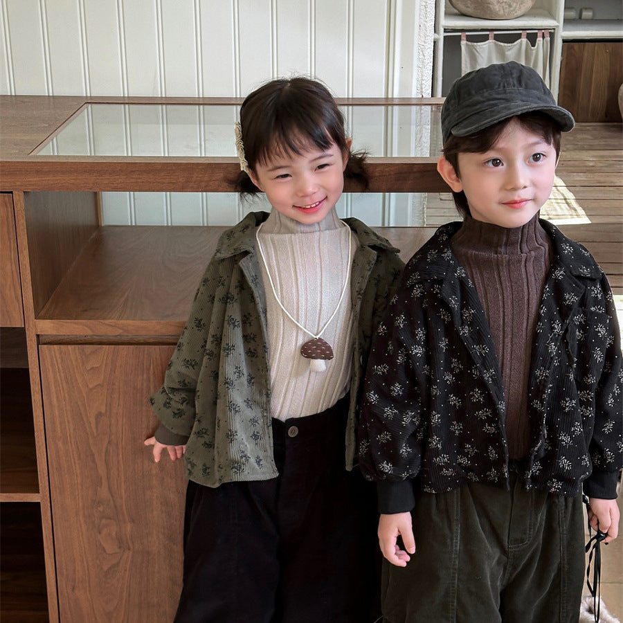 あたたかみのあるコーデュロイ素材を使用した裏起毛花総柄ジャケット。