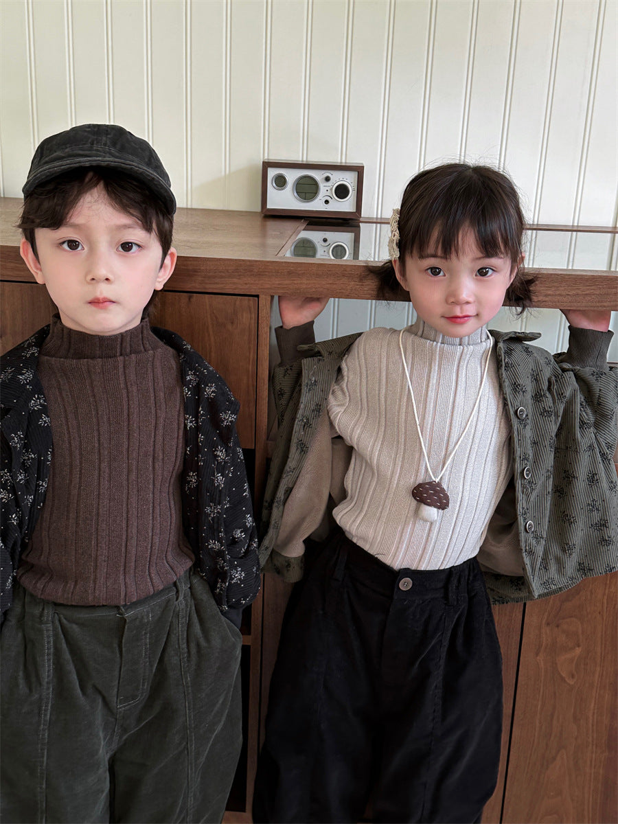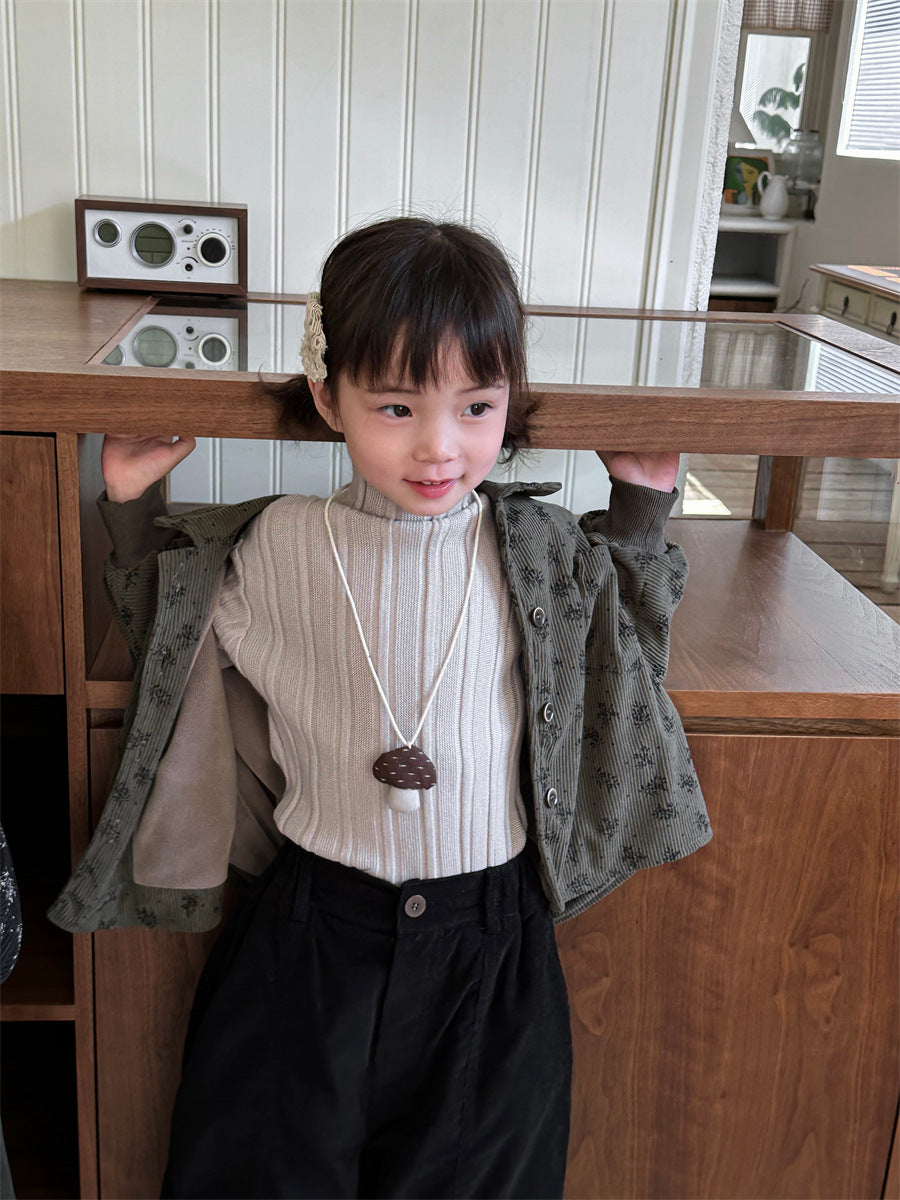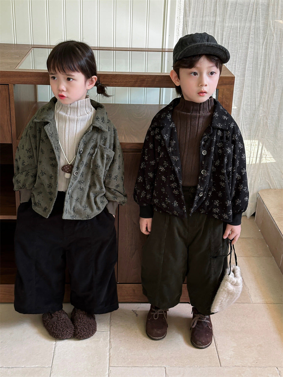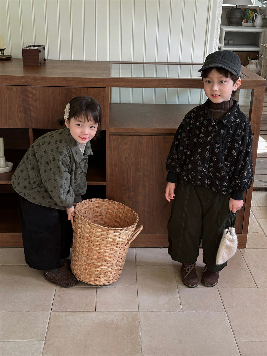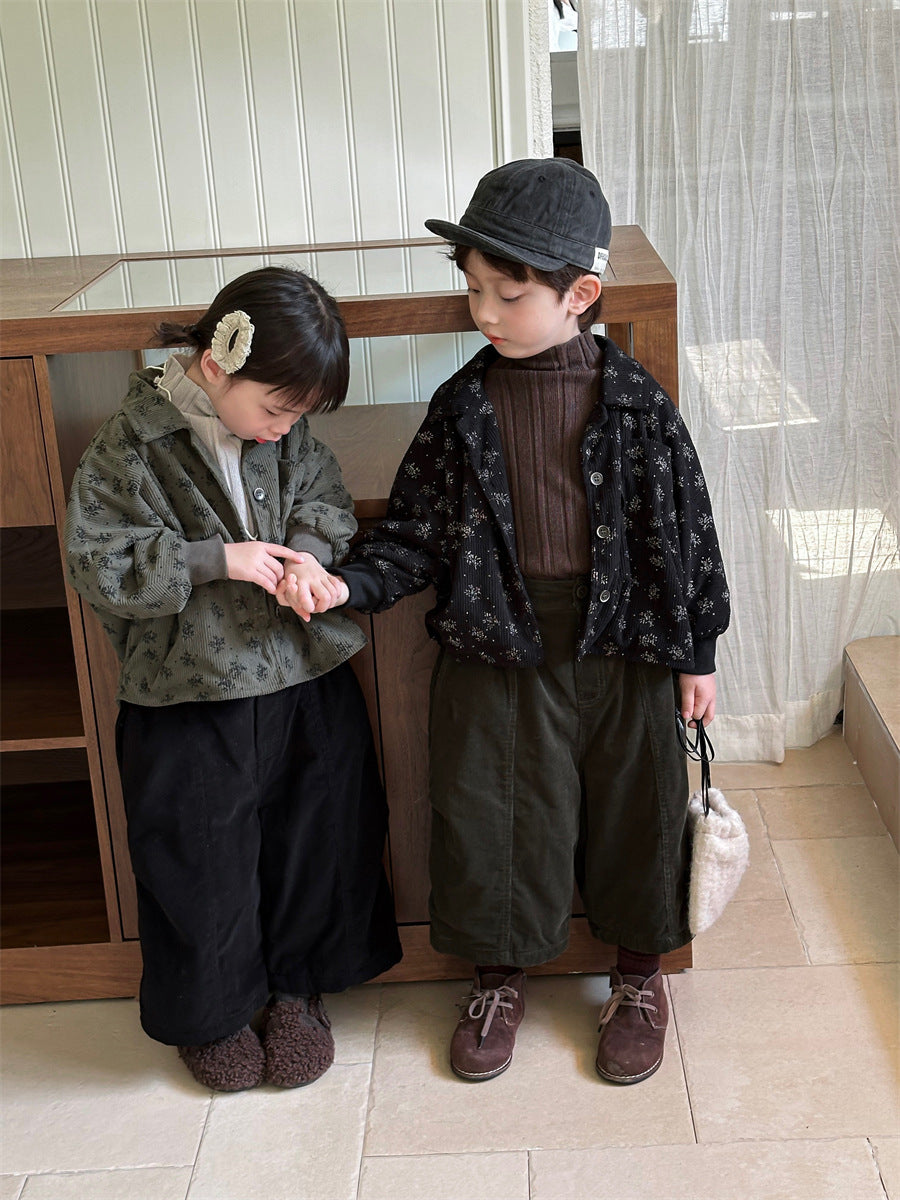 あたたかみのあるコーデュロイ素材を使用した裏起毛花総柄ジャケット。
