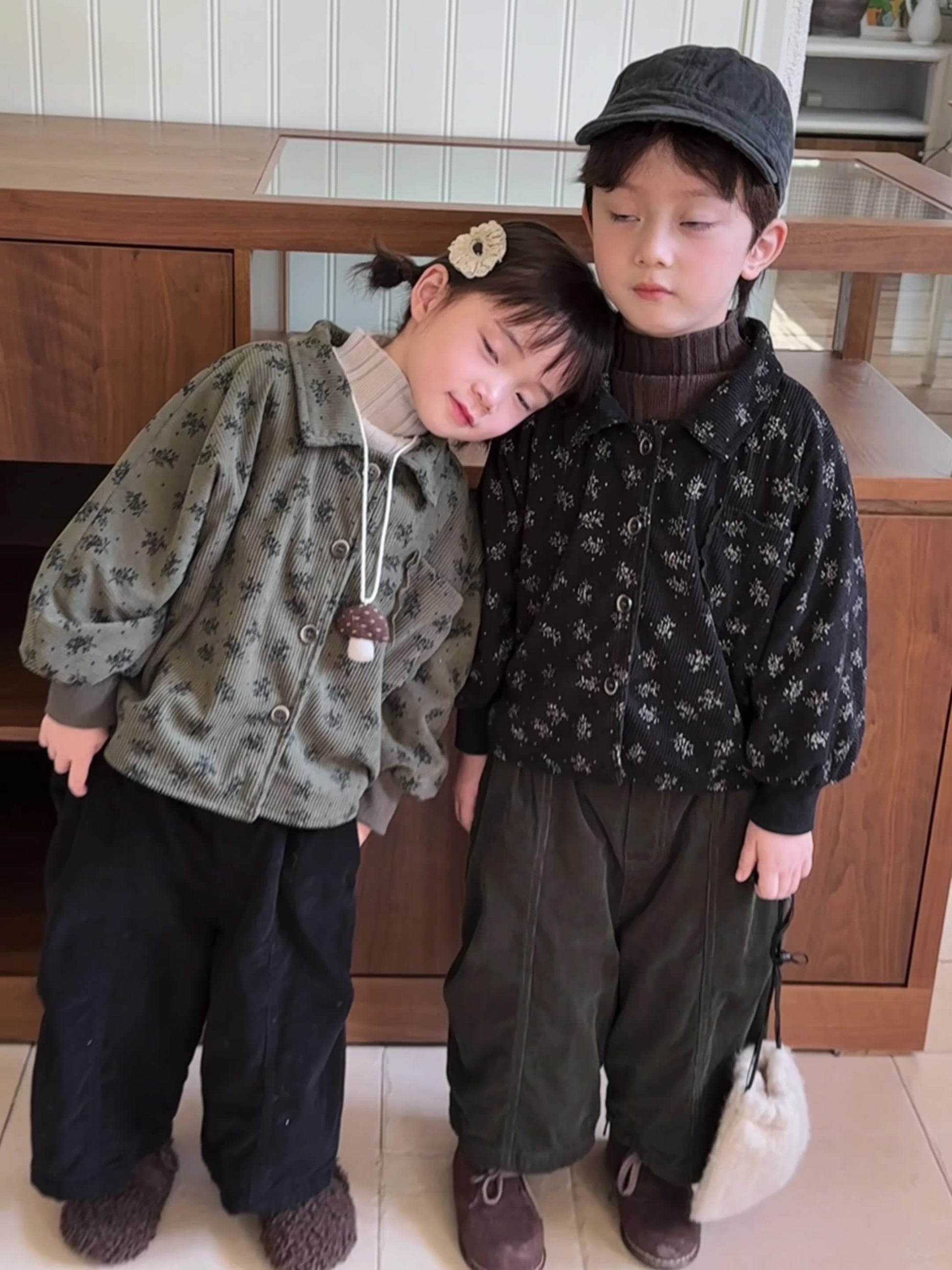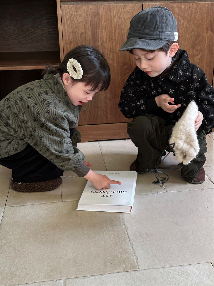 花総柄裏起毛コーデュロアウター