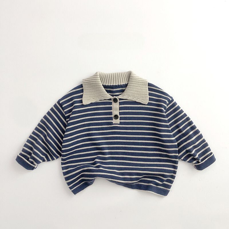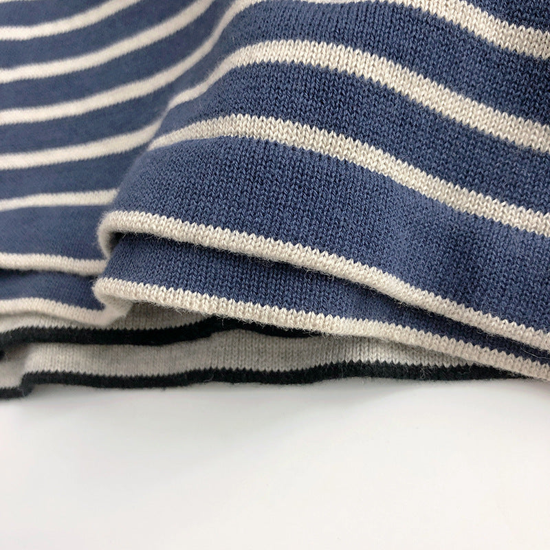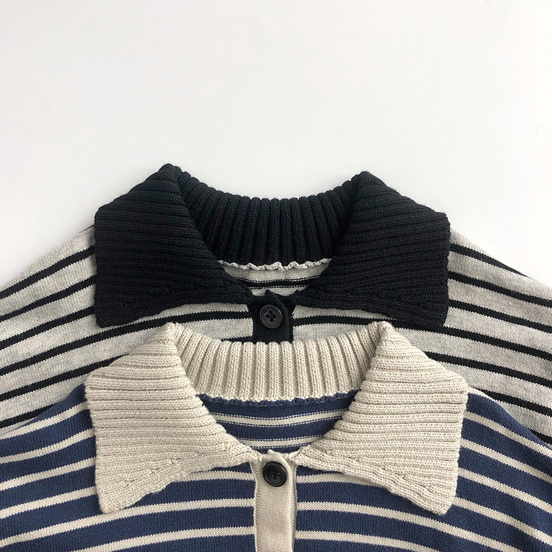 ボーダー柄と衿配色が爽やかでオシャレです。