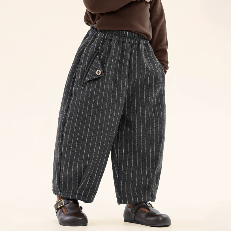 独特なポケットデザインがアクセントになるストライプ柄パンツ。