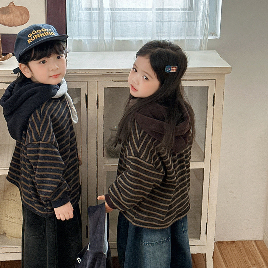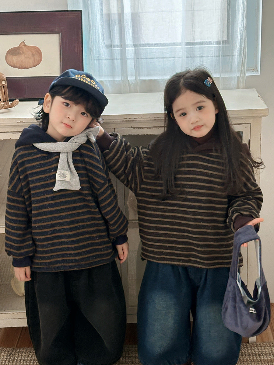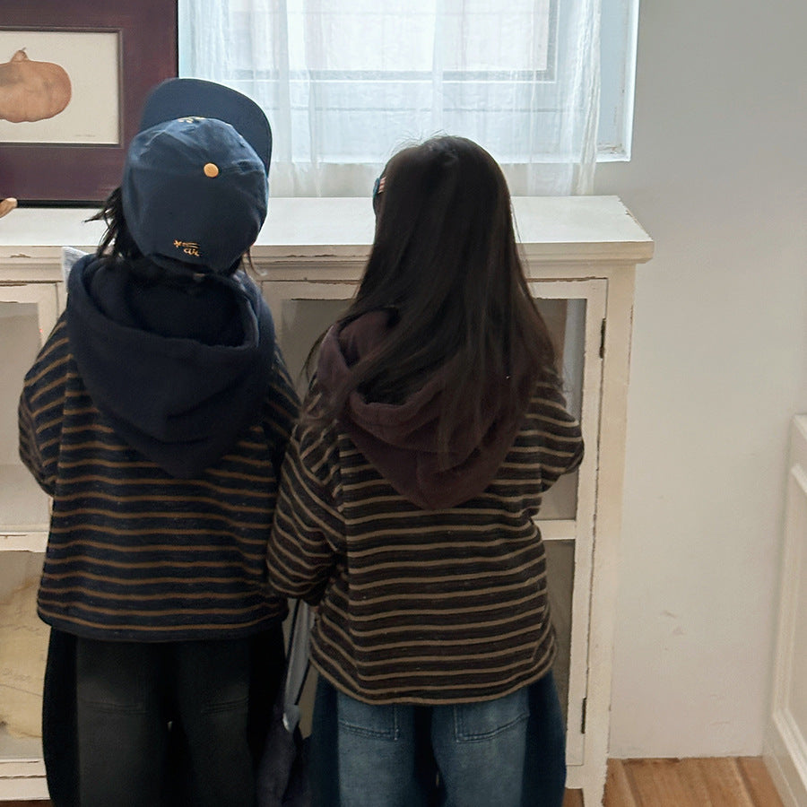 ボディのボーダー柄と無地フードの絶妙なコントラストが魅力のパーカーです。
