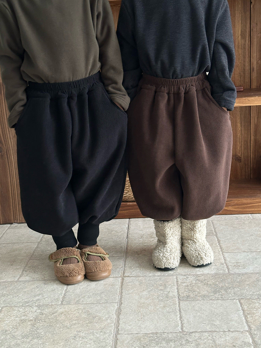 シンプルで無駄のないデザインが、男の子にも女の子にも違和感なく似合う厚手裏ボアパンツ。