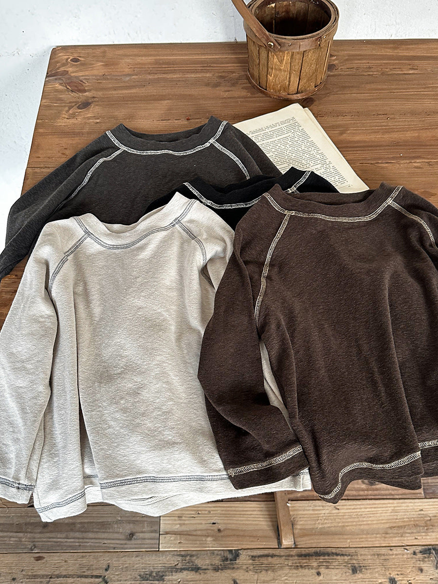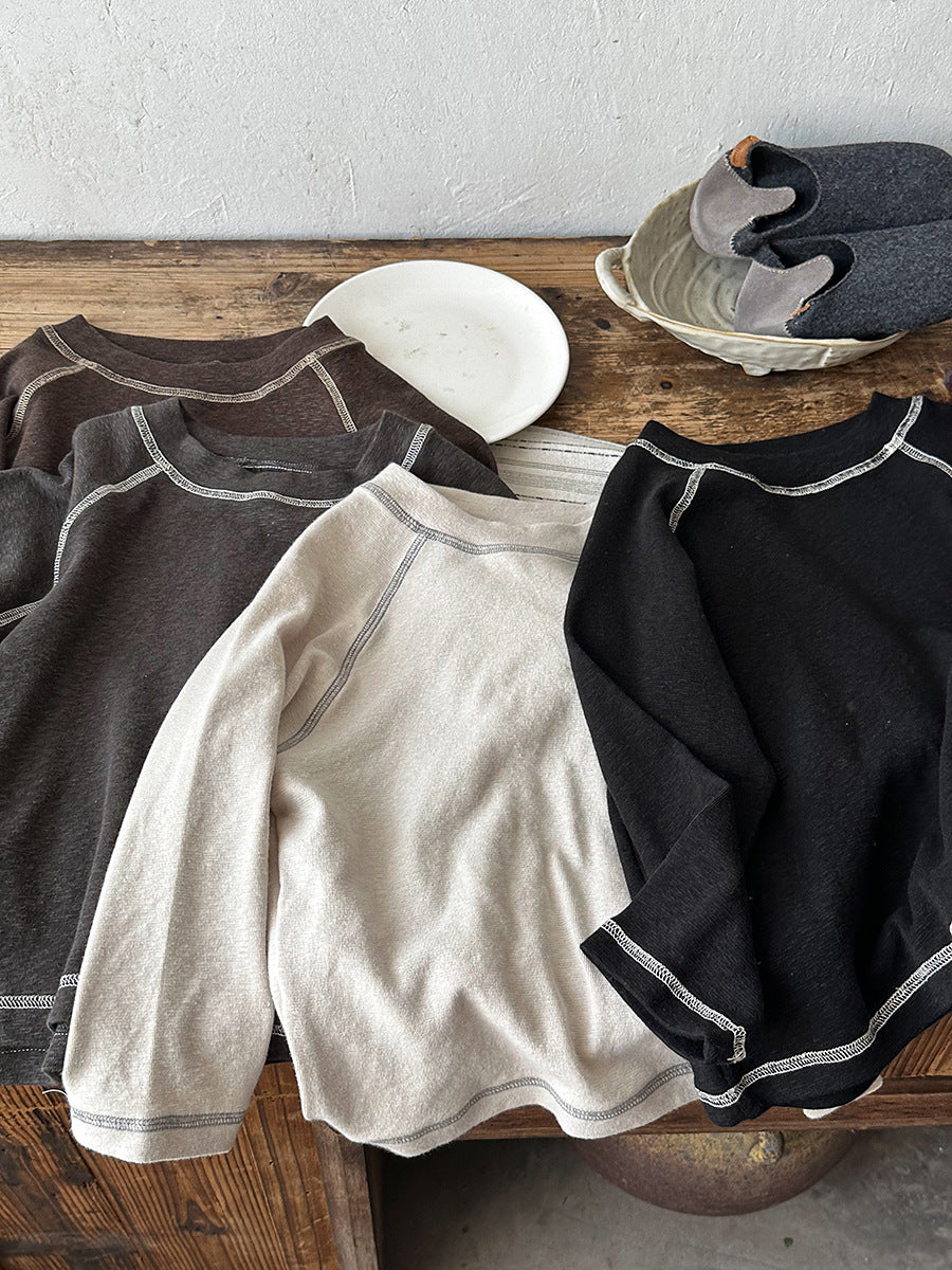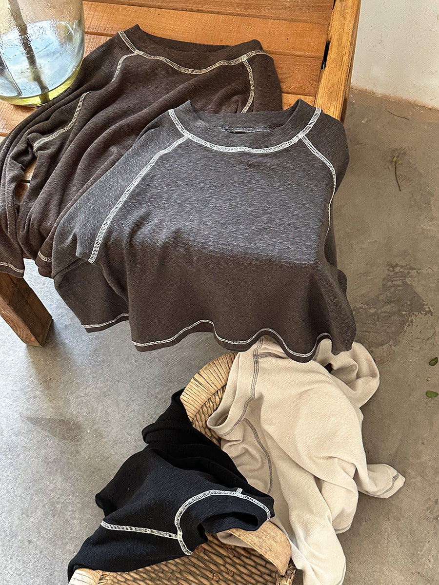 配色ステッチがアクセントになりシンプルながらも高見え、大人っぽいおしゃれさが魅力の長袖Tシャツ。