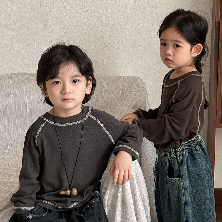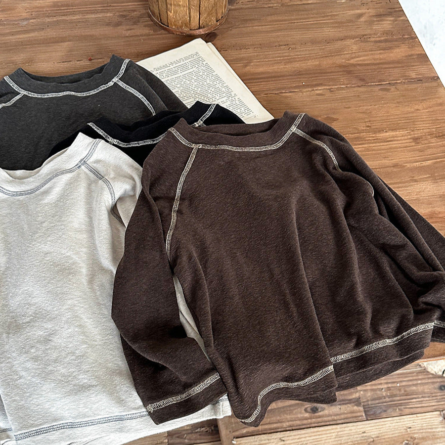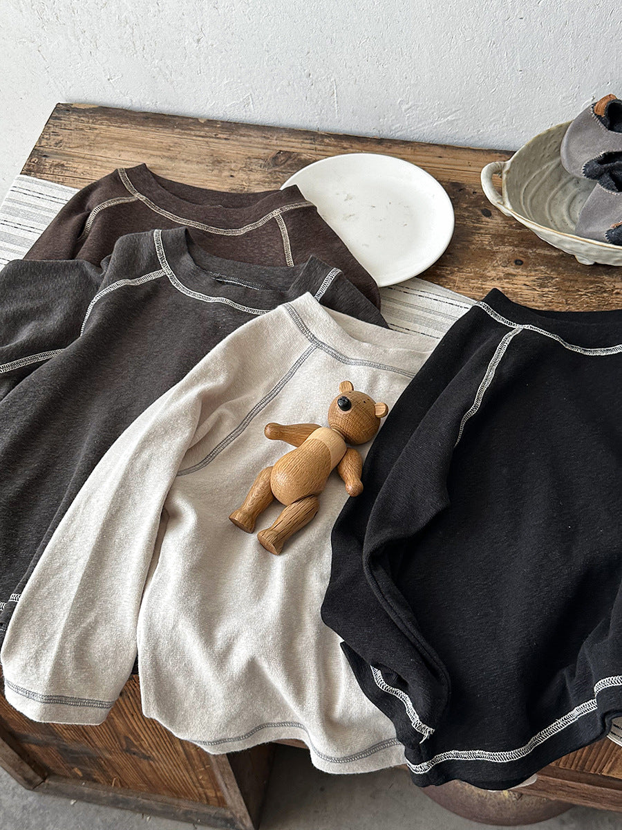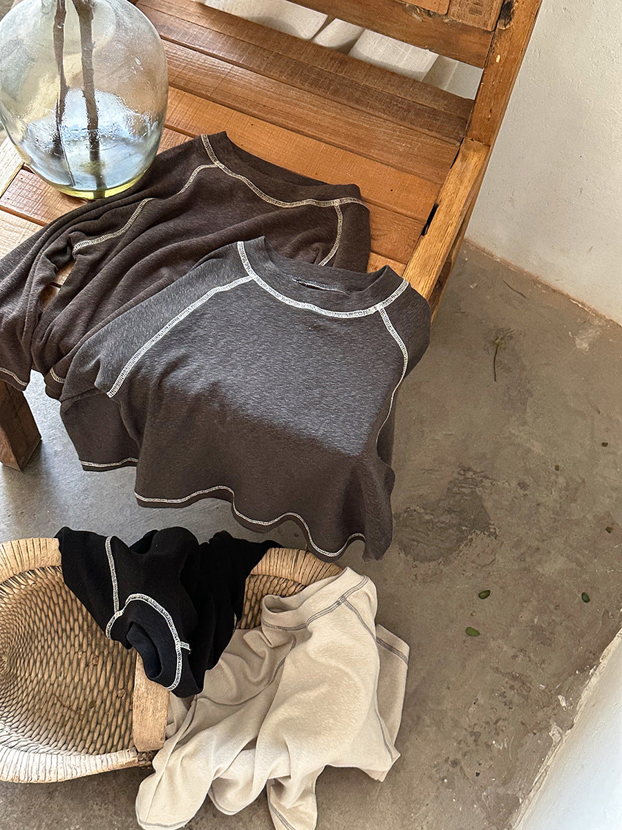 配色ステッチがアクセントになりシンプルながらも高見え、大人っぽいおしゃれさが魅力の長袖Tシャツ。
