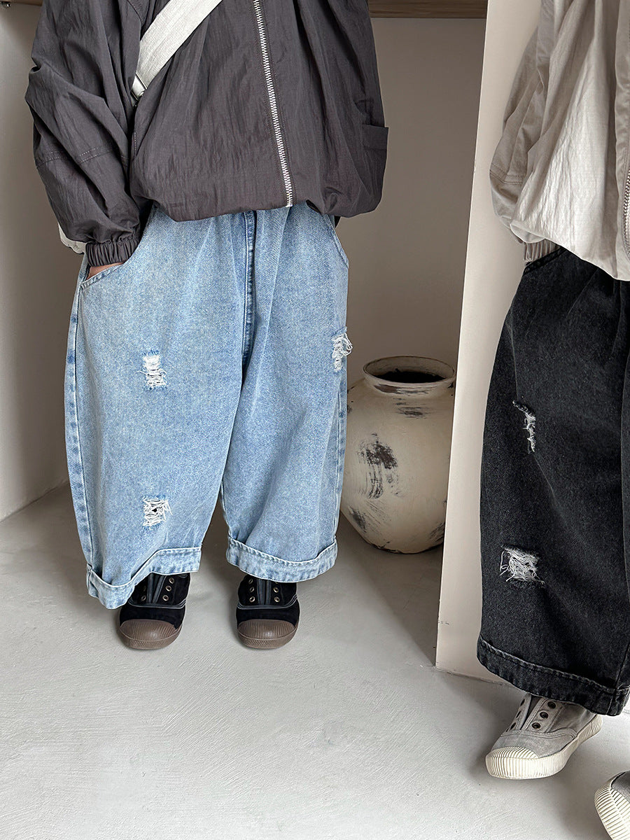 絶妙な色落ち加工とダメージ具合が特徴的なストレートデニムです。