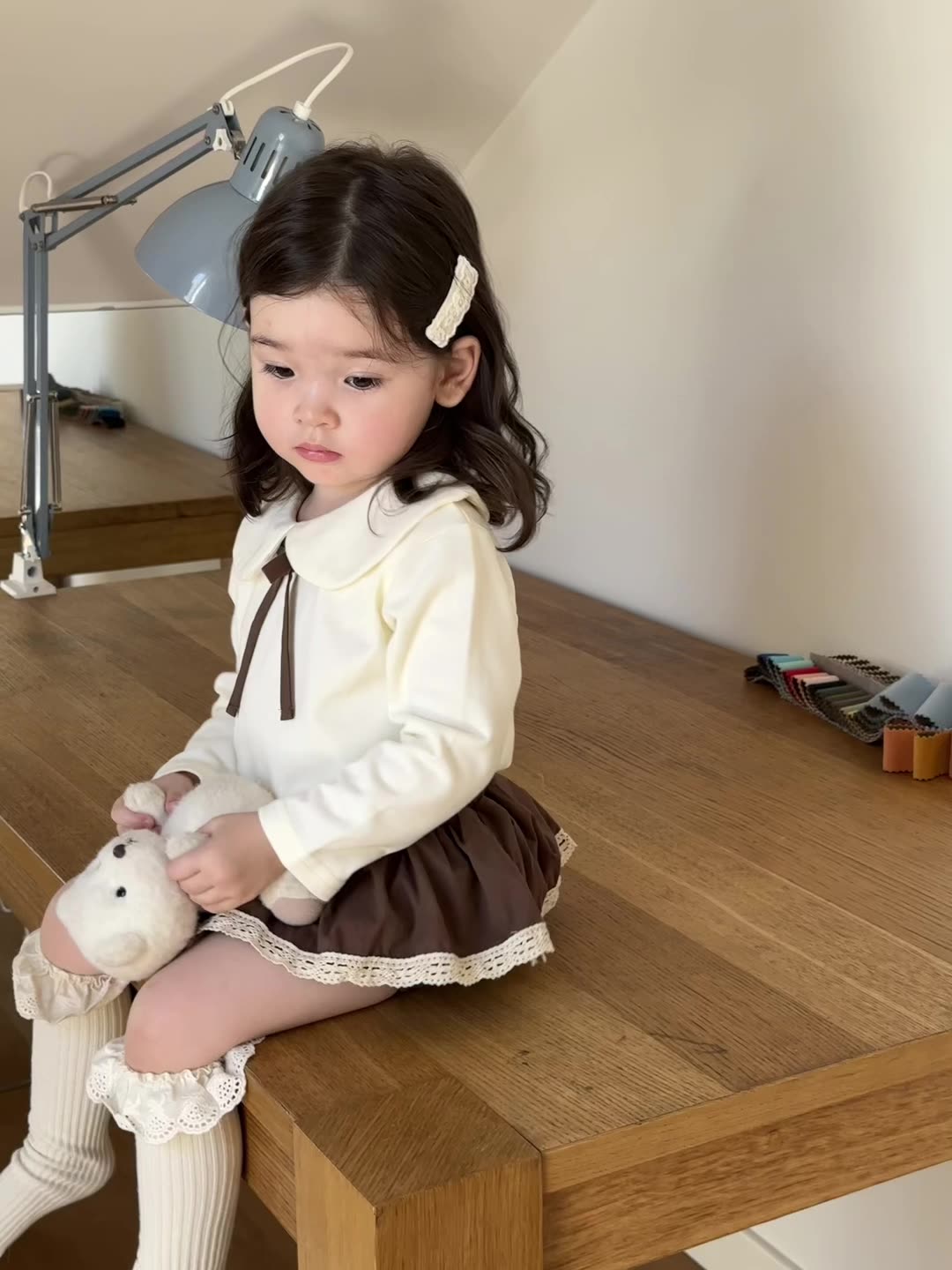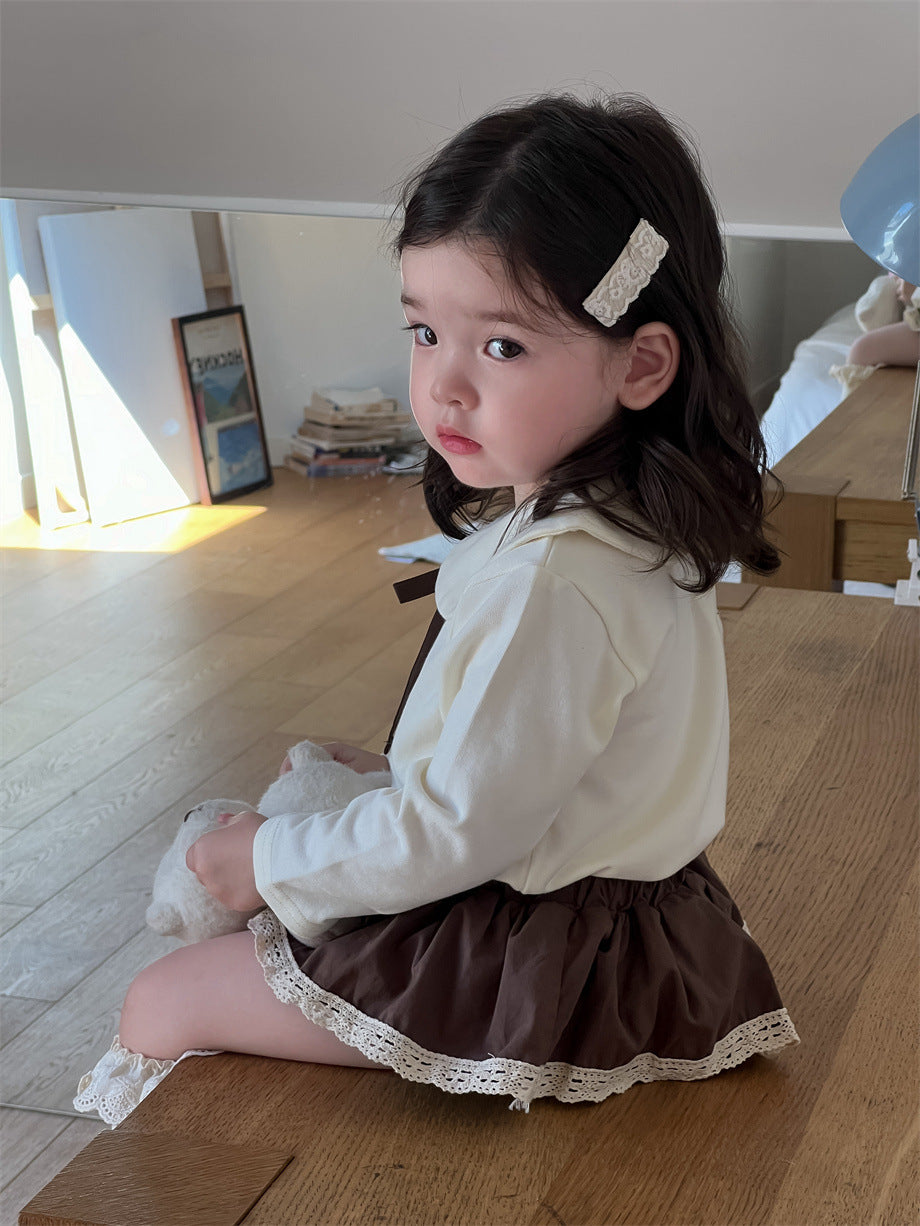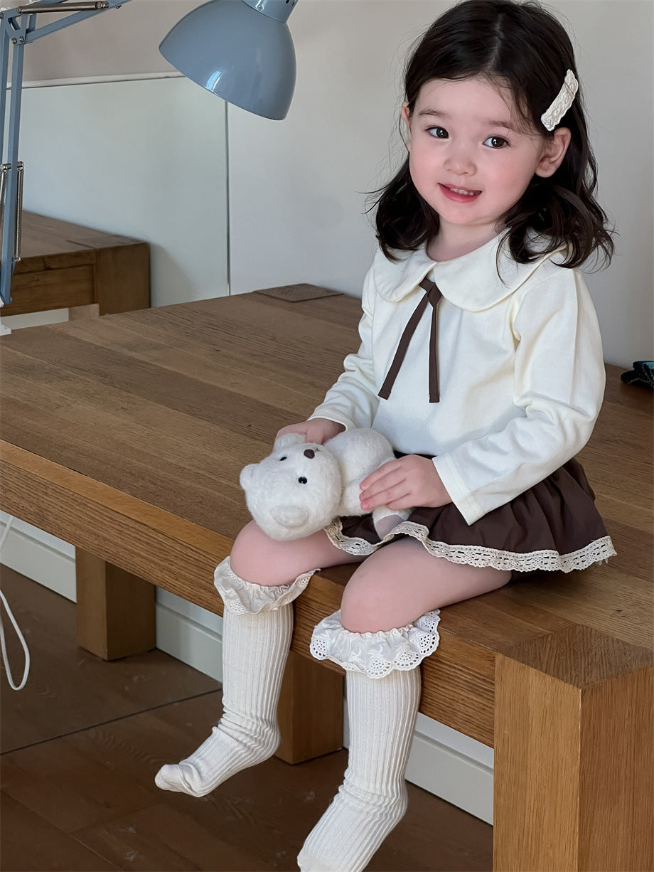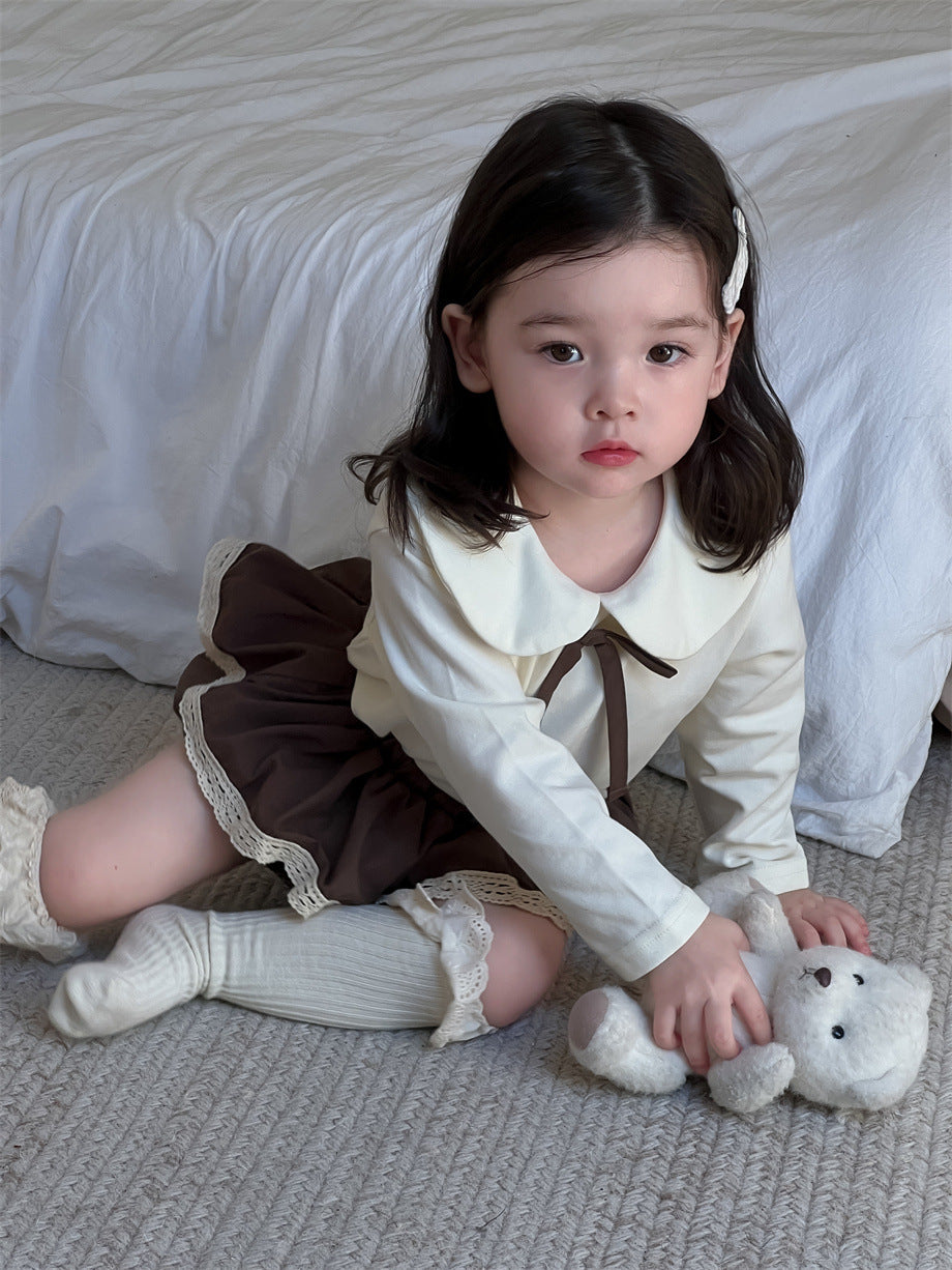 丸襟にリボン結び、日常の着こなしに可愛さを添えます。