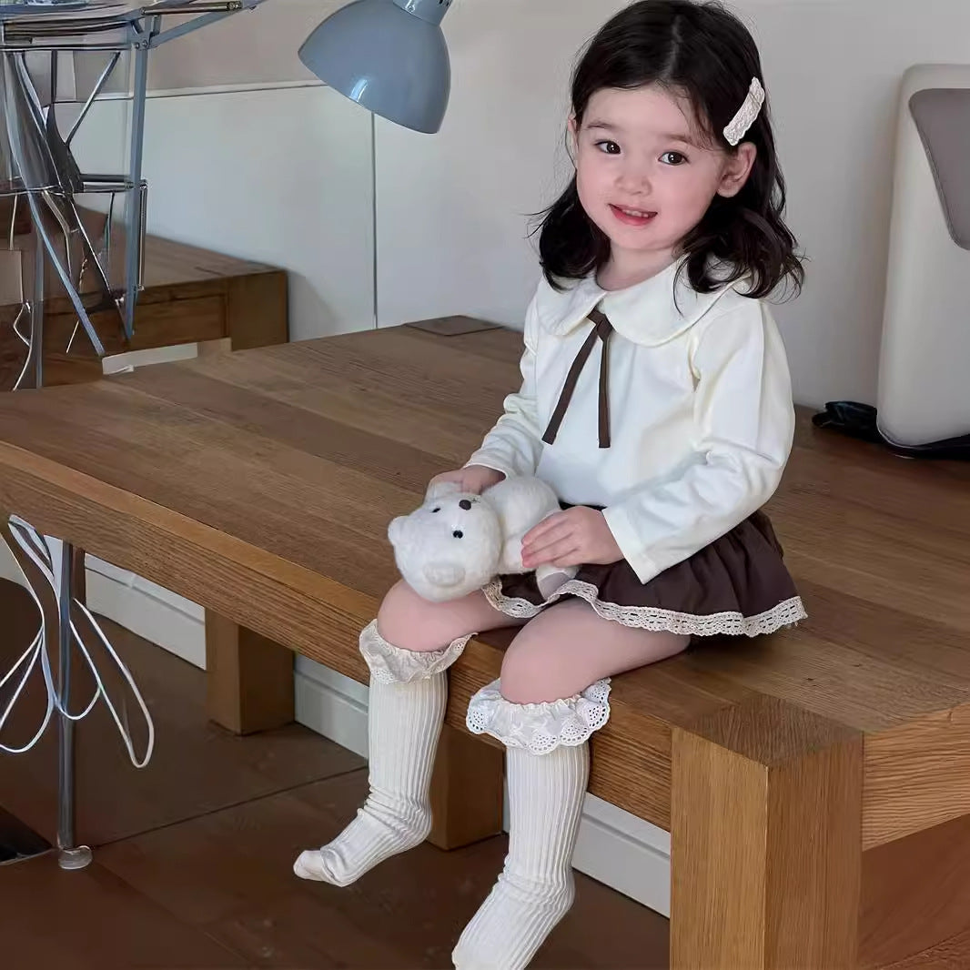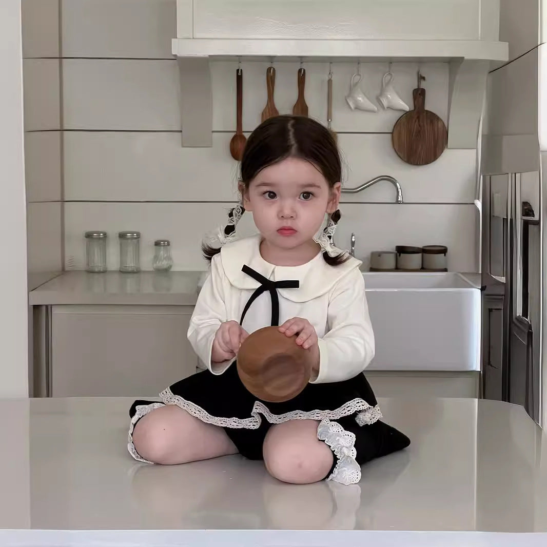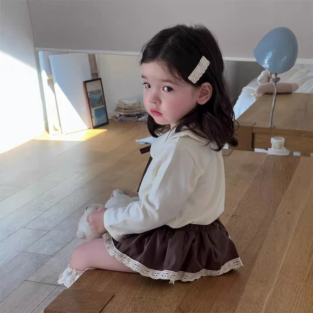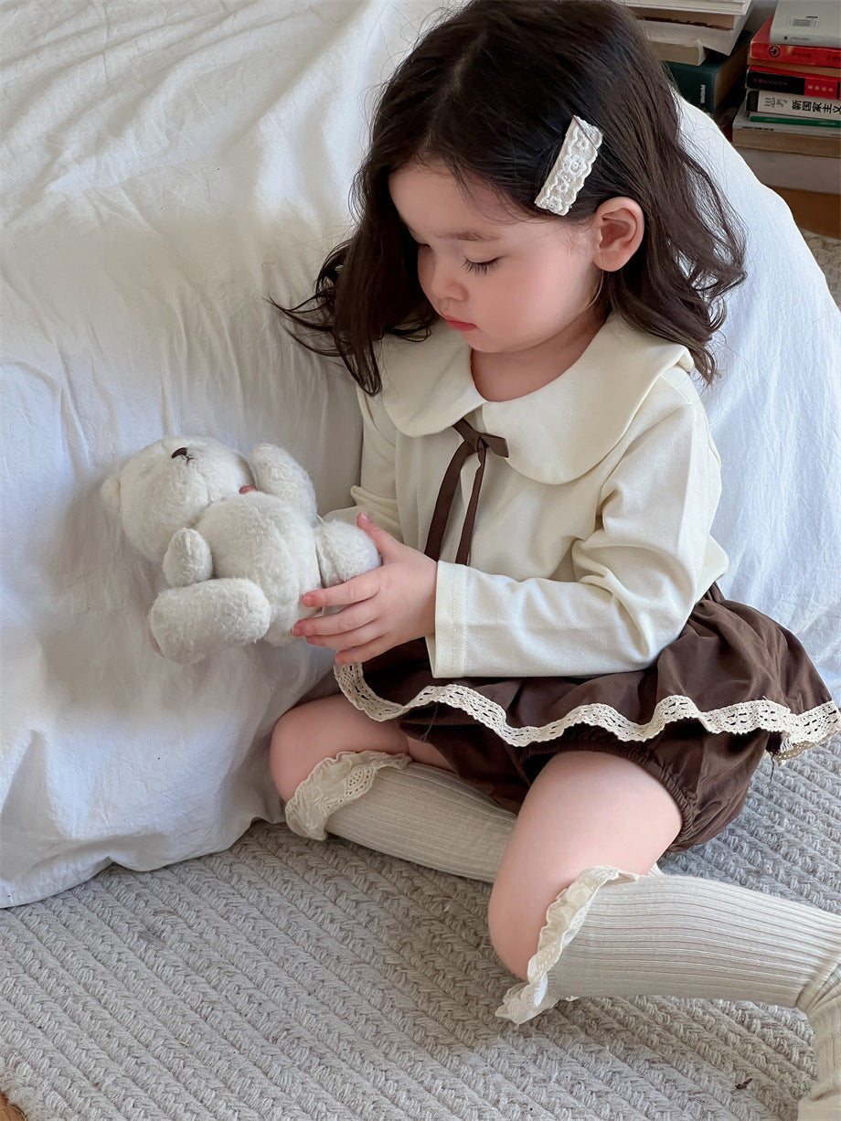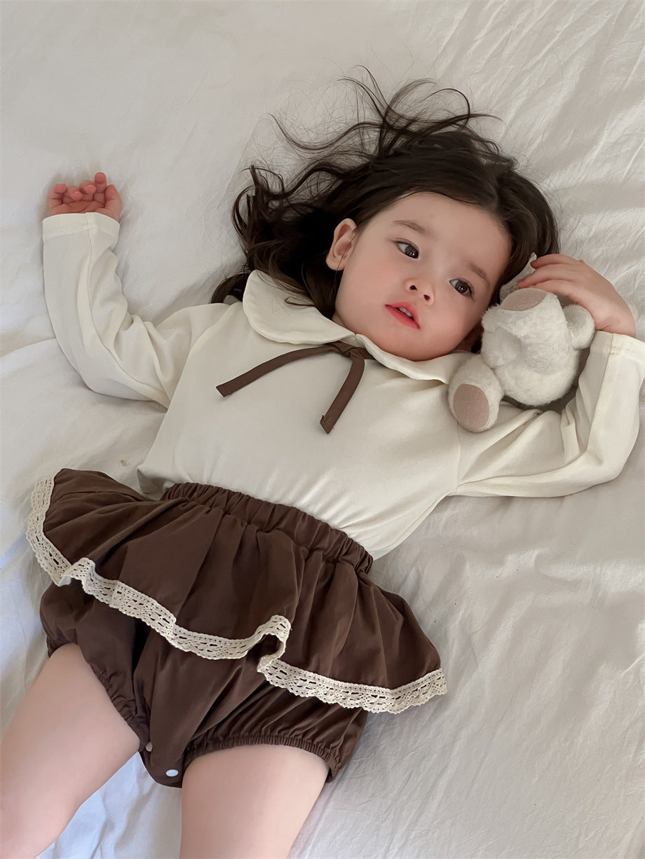 丸襟にリボン結び、日常の着こなしに可愛さを添えます。