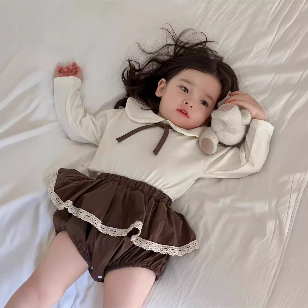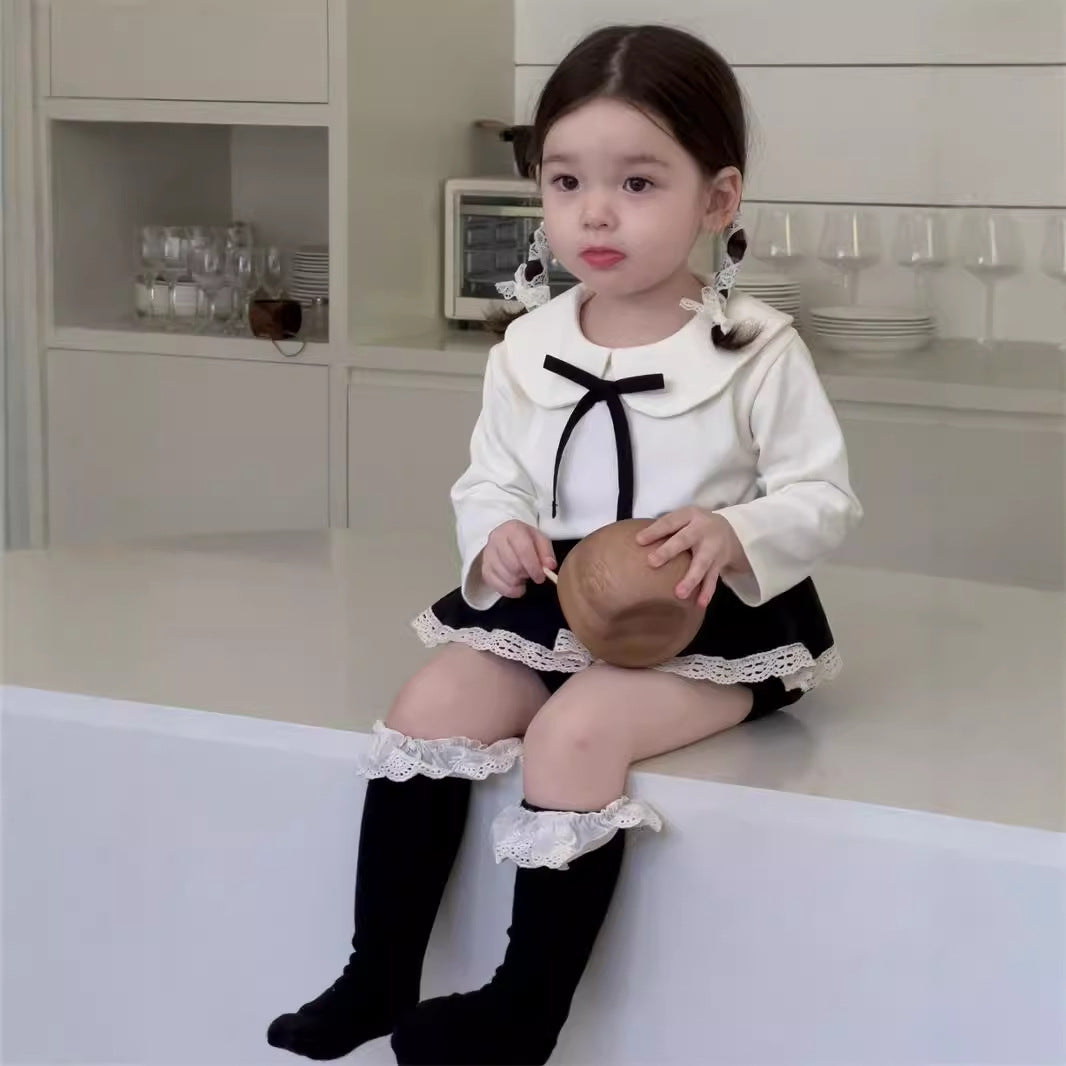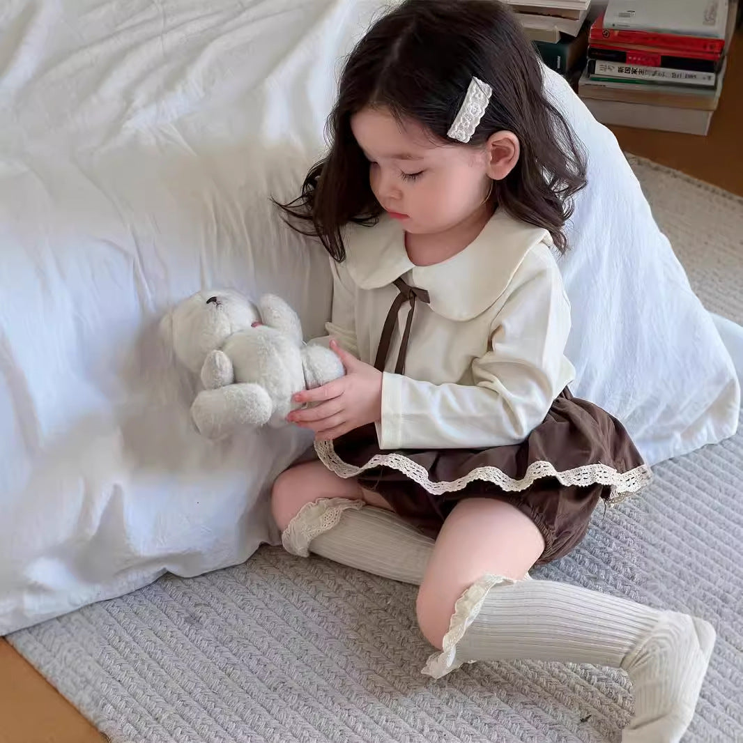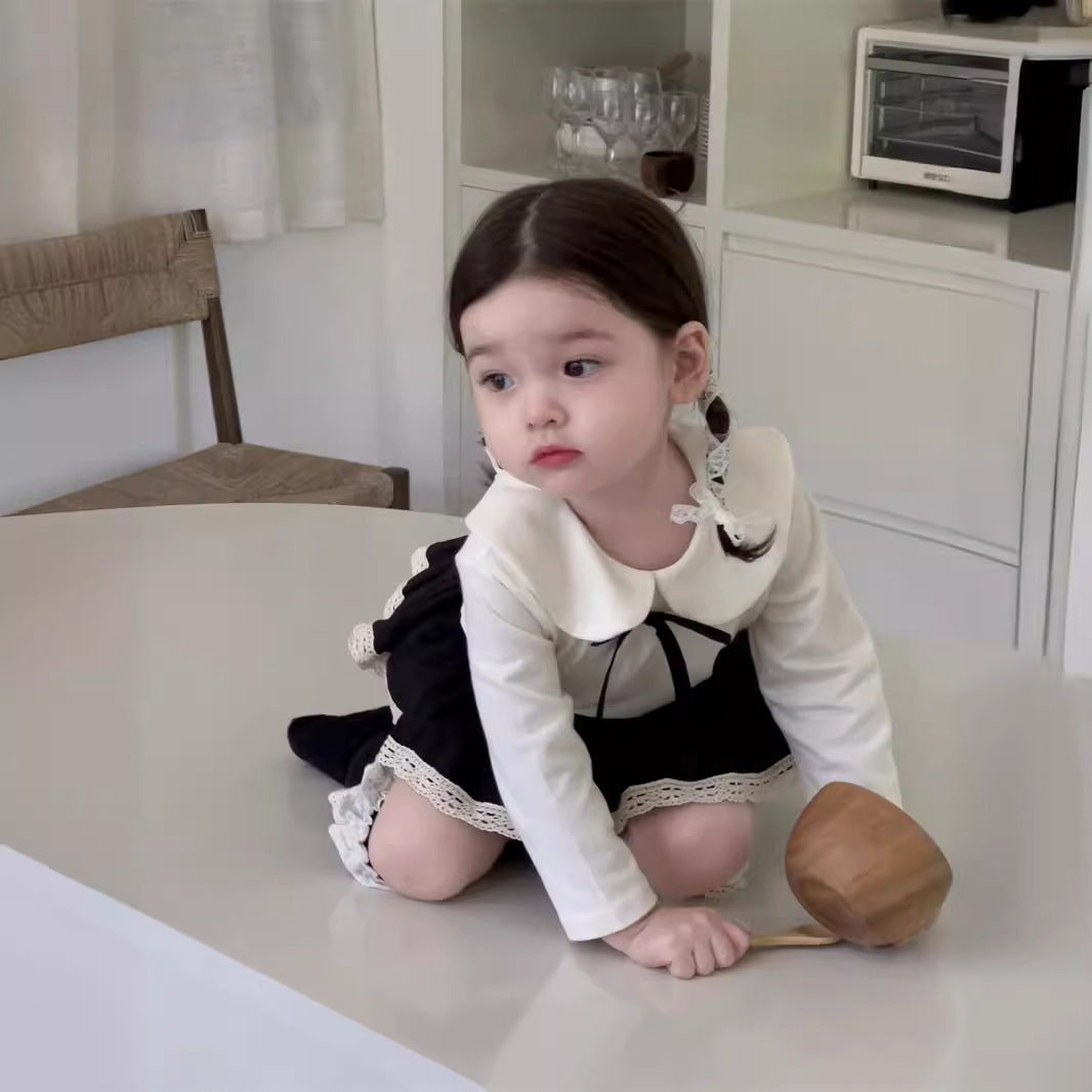 丸襟にリボン結び、日常の着こなしに可愛さを添えます。