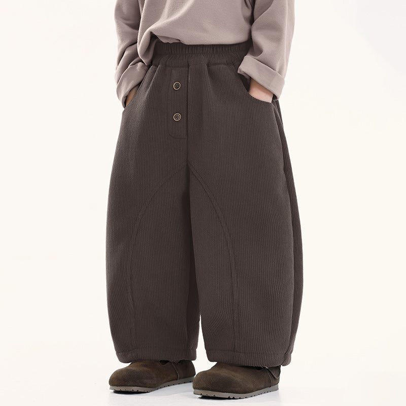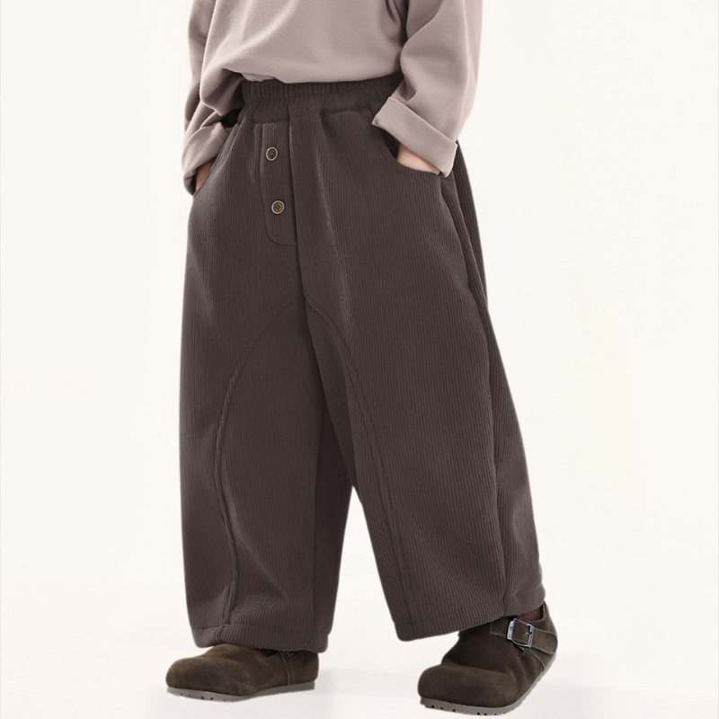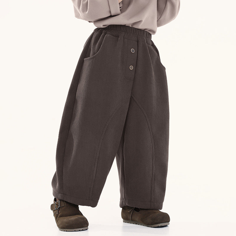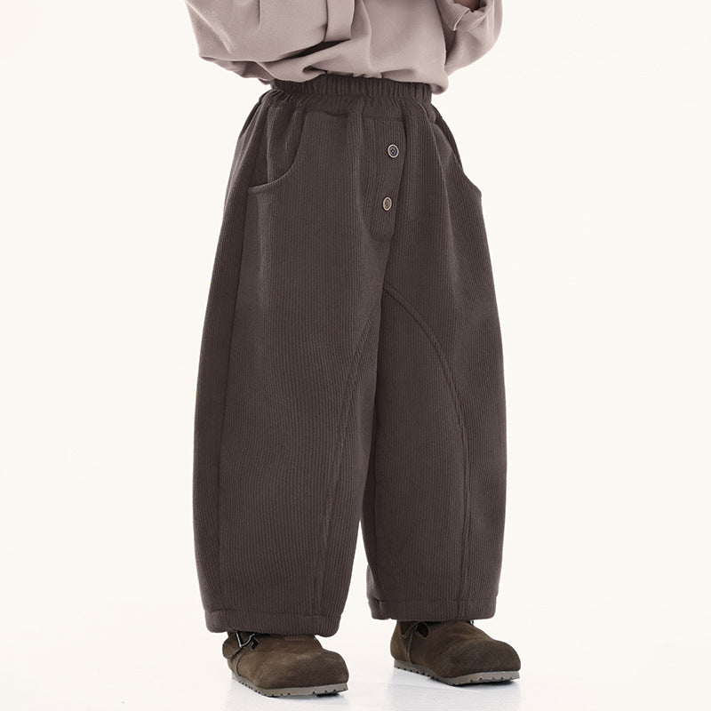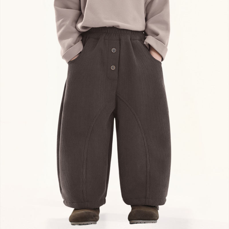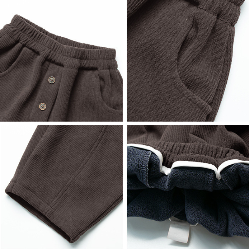 冬の定番素材、コーデュロイのふんわり温もりと、肌側裏ボアが、寒い日もぽっかぽかに。